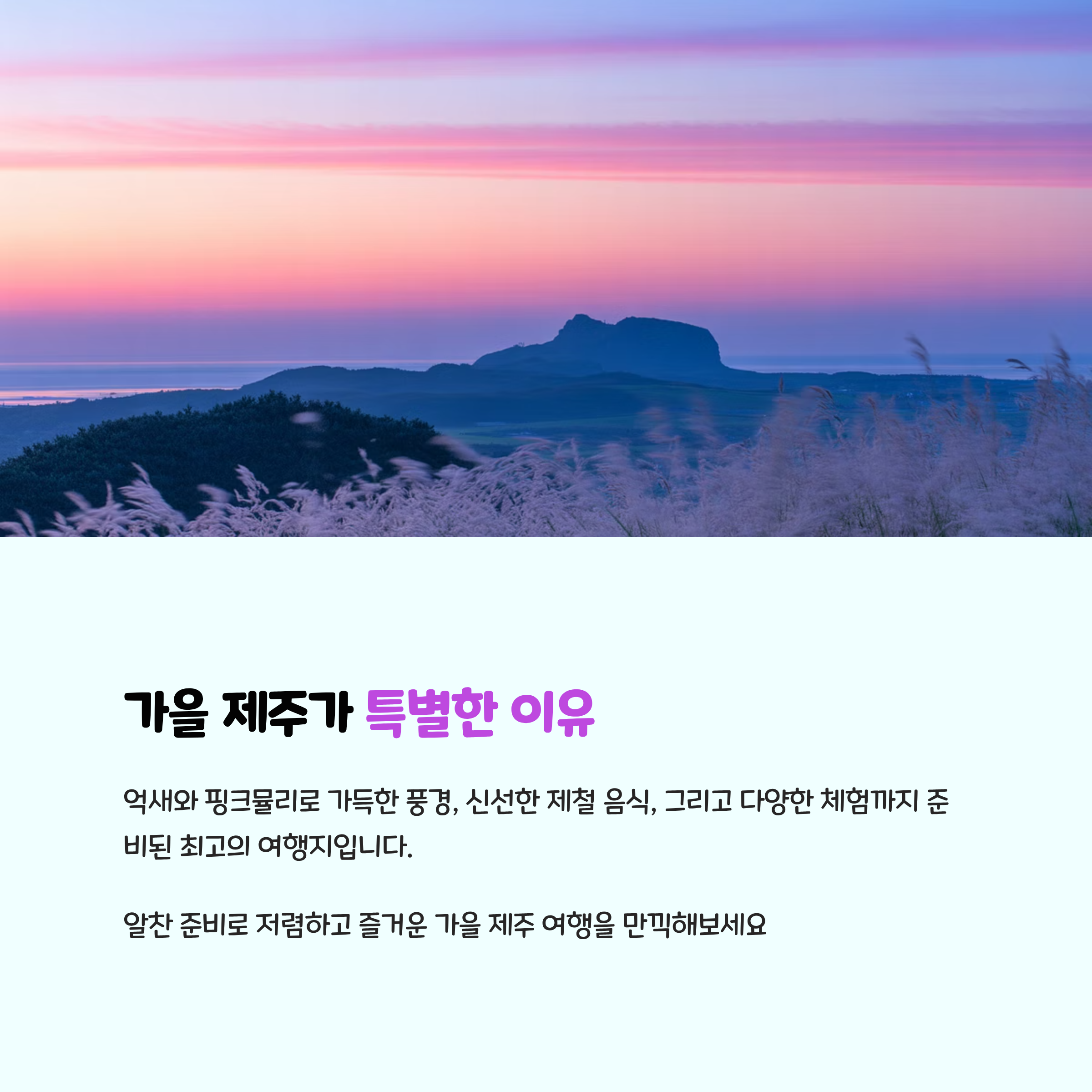 알찬 준비로 저렴하고 즐거운 가을 제주 여행을 만끽해보세요.