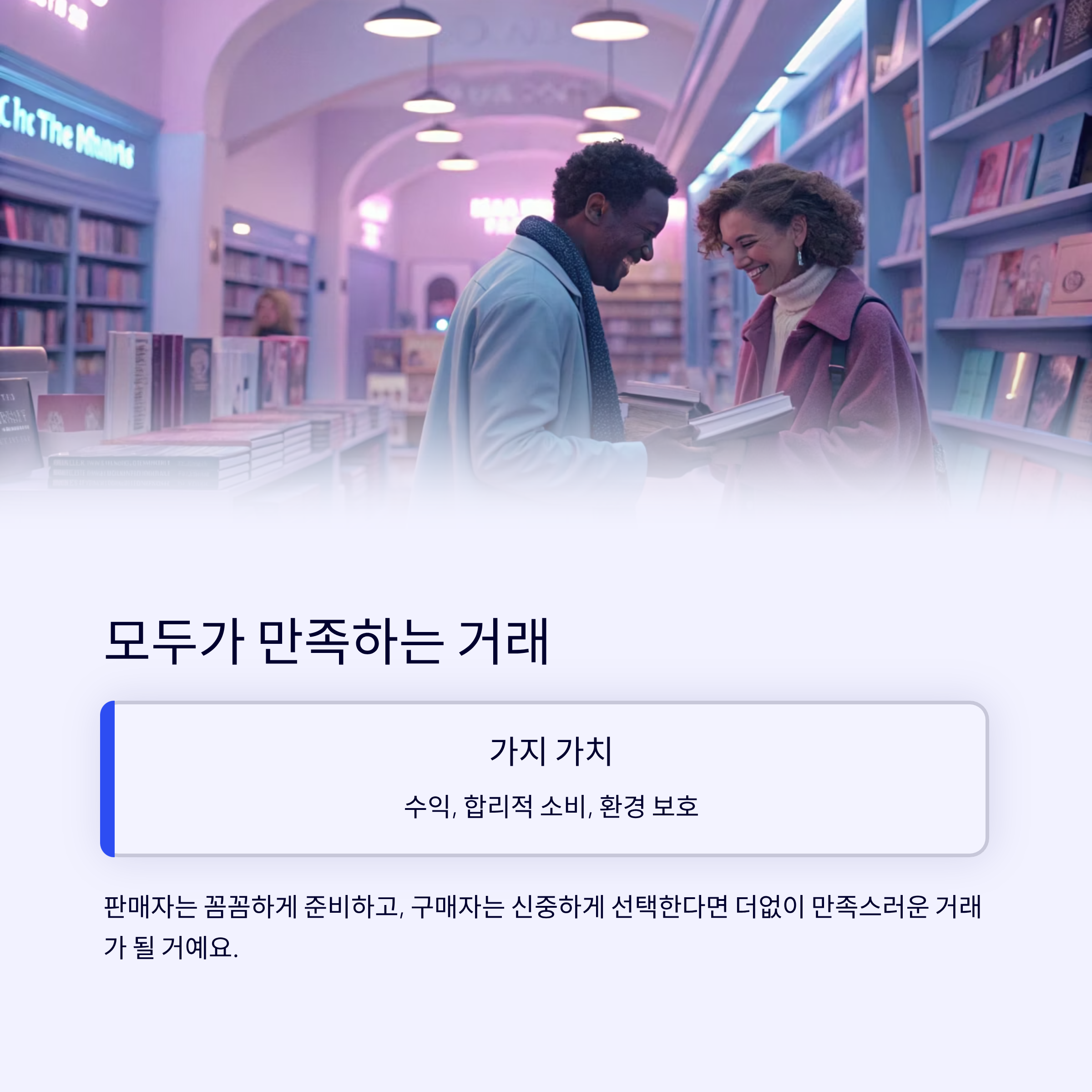 개똥이네 중고책은 판매자에게는 수익, 구매자에게는 합리적인 소비, 그리고 환경에는 보호라는 세 가지 가치를 동시에 줍니다. 판매자는 꼼꼼하게 준비하고, 구매자는 신중하게 선택한다면 더없이 만족스러운 거래가 될 거예요.