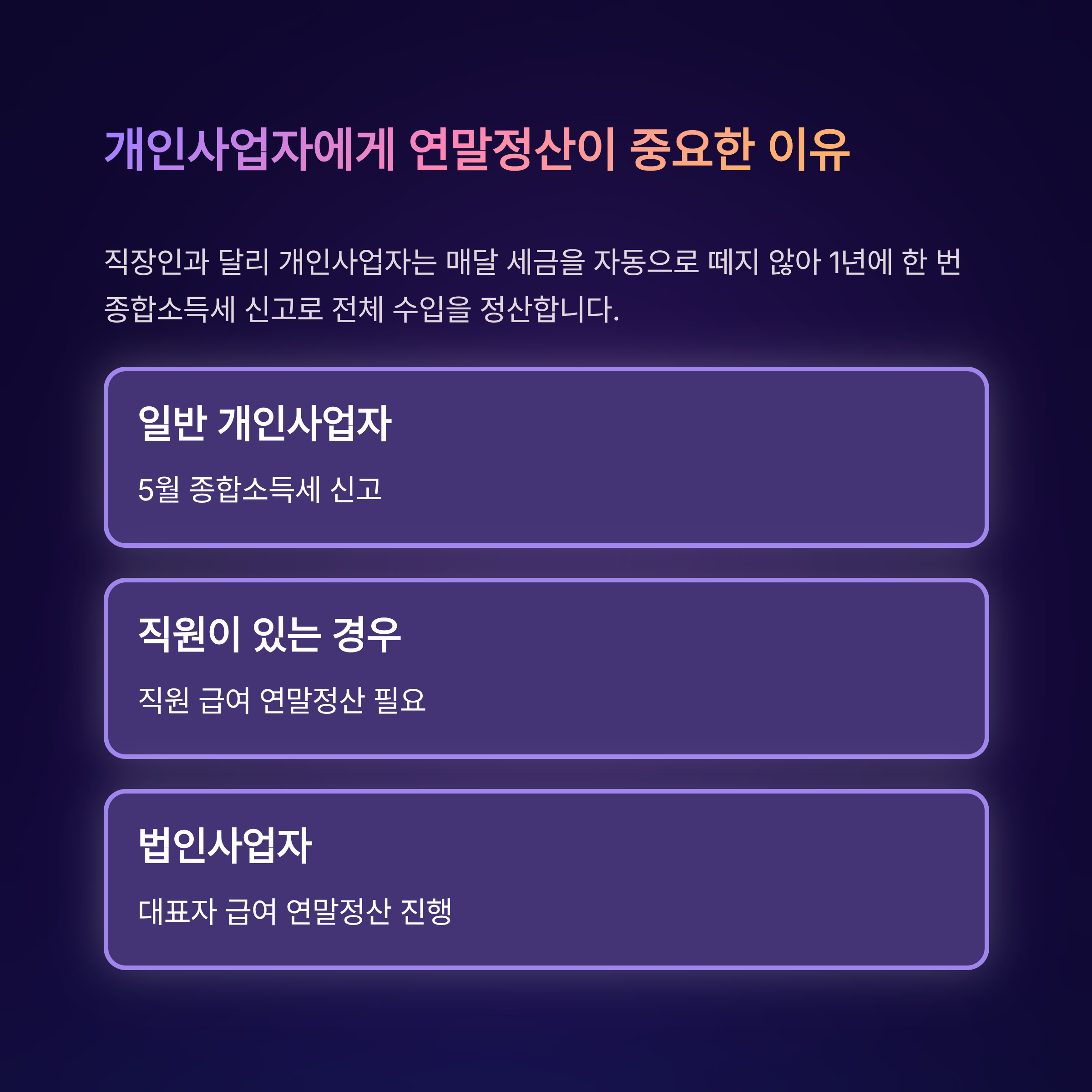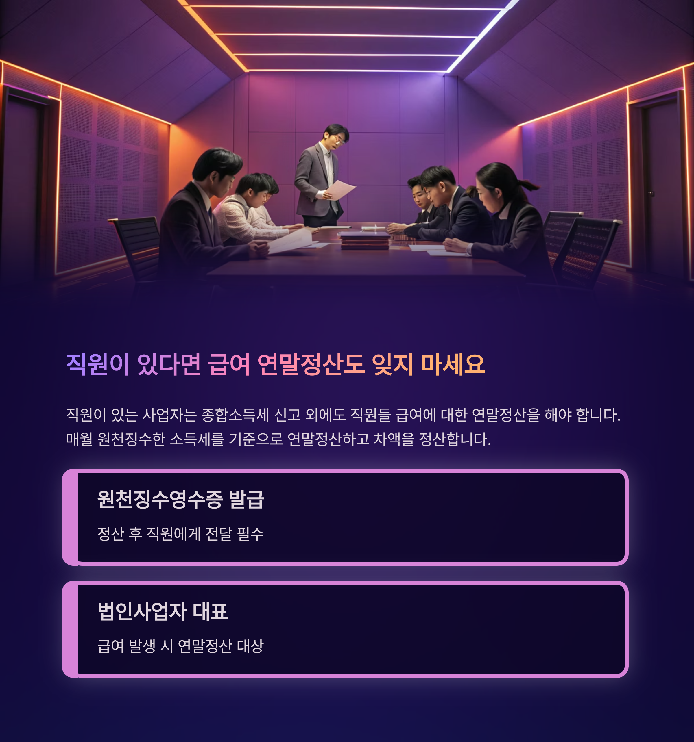 | 직원이 있는 경우 | 직원 급여에 대한 연말정산 필요 |