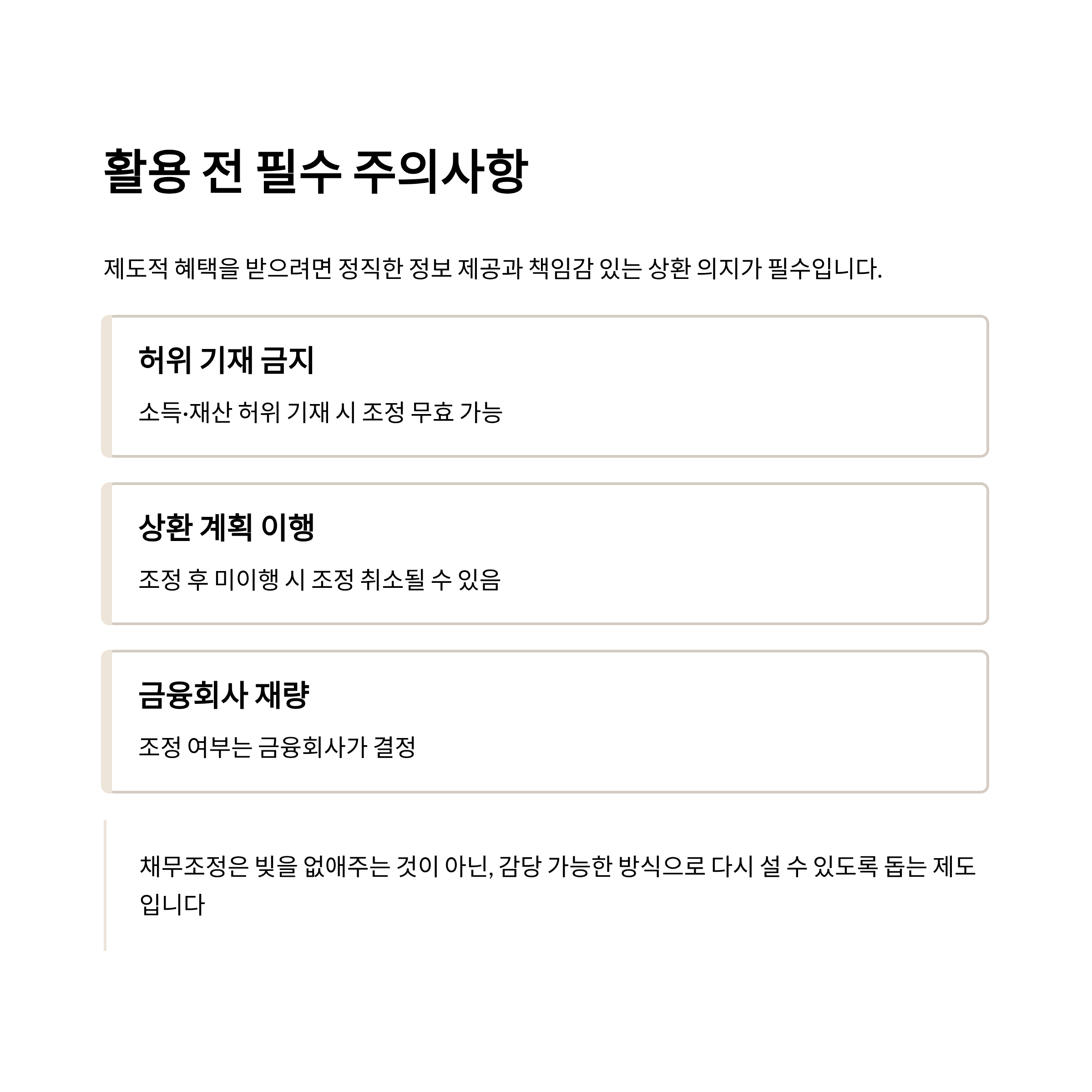 - 조정 후 상환 계획 미이행 시, 조정 취소될 수 있음