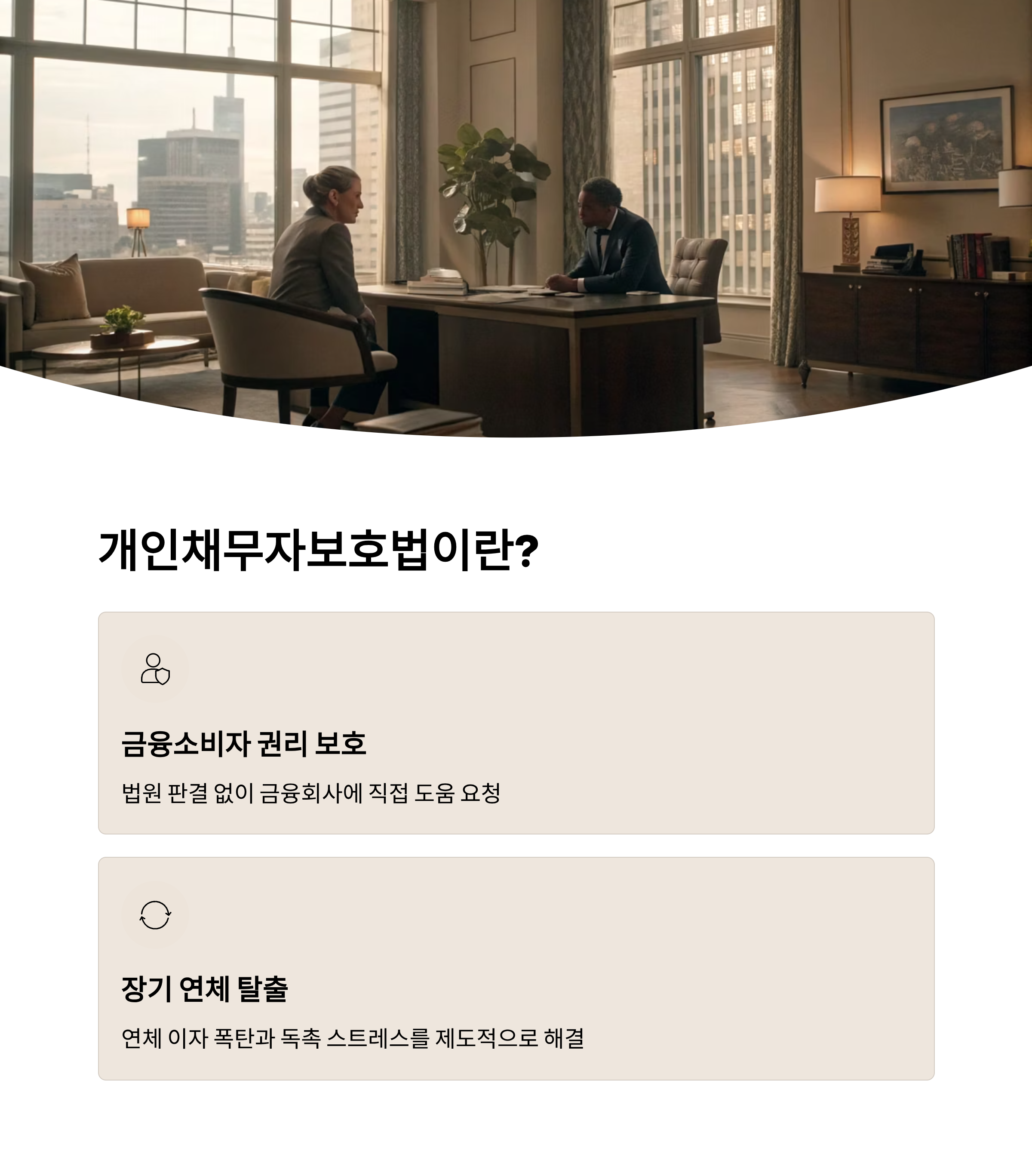 개인채무자보호법은 금융소비자의 권리를 보호하고 장기적인 연체로부터 벗어날 수 있도록 설계된 제도입니다. 연체 이자 폭탄, 독촉 전화로 인한 스트레스, 이제는 제도적으로 줄일 수 있습니다.