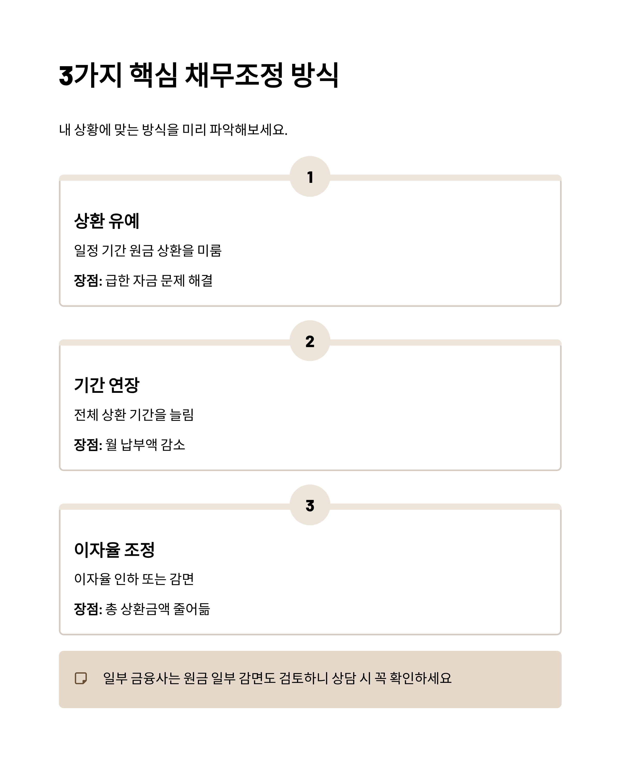 어떤 방식으로 채무조정이 이뤄지는지 미리 파악하면, 내 상황에 맞는 방식을 고를 수 있어요.