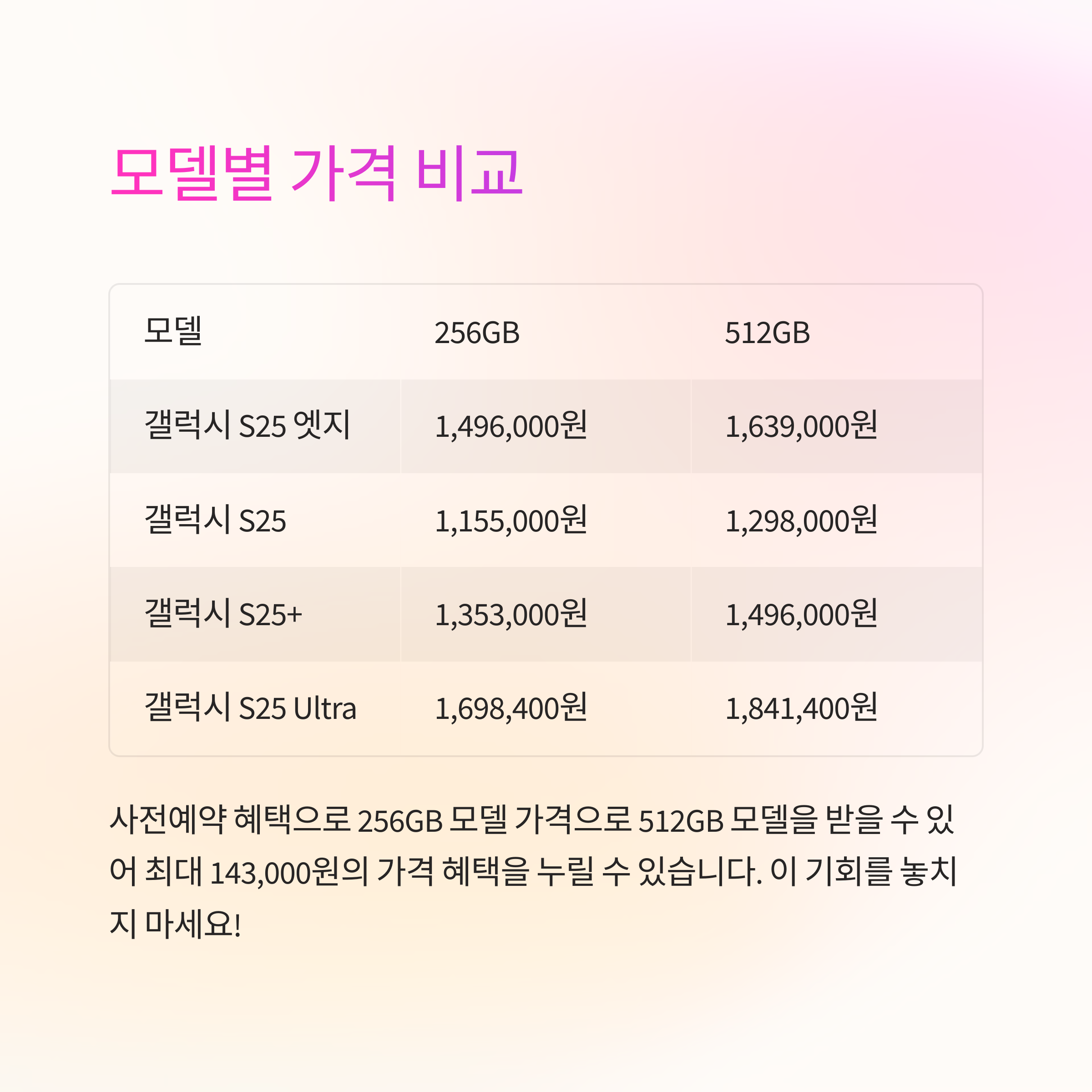 | 갤럭시 S25 | 1,155,000원 | 1,298,000원 |