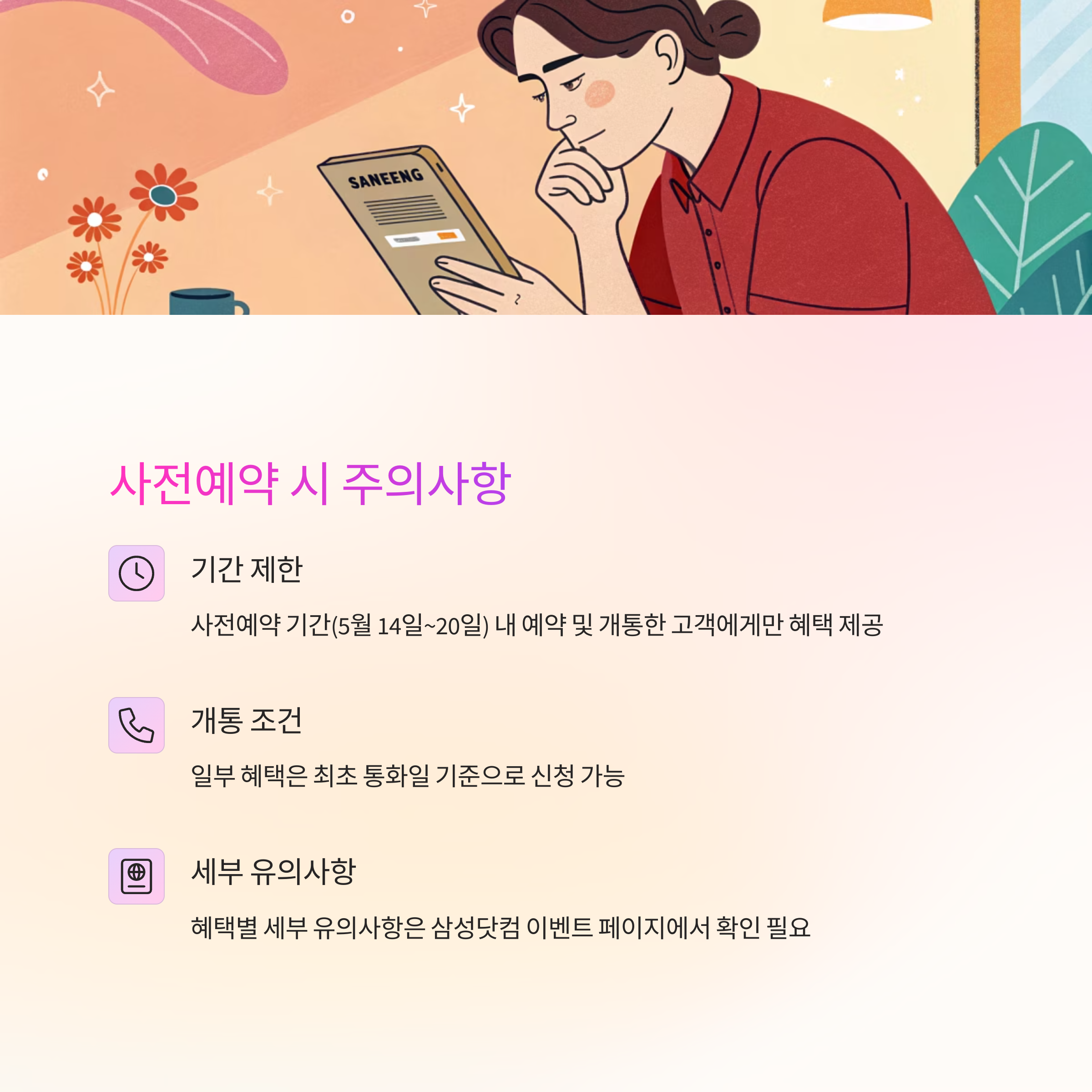 - 사전예약 혜택은 사전예약 기간 내 예약 및 개통한 고객에게만 제공됩니다.