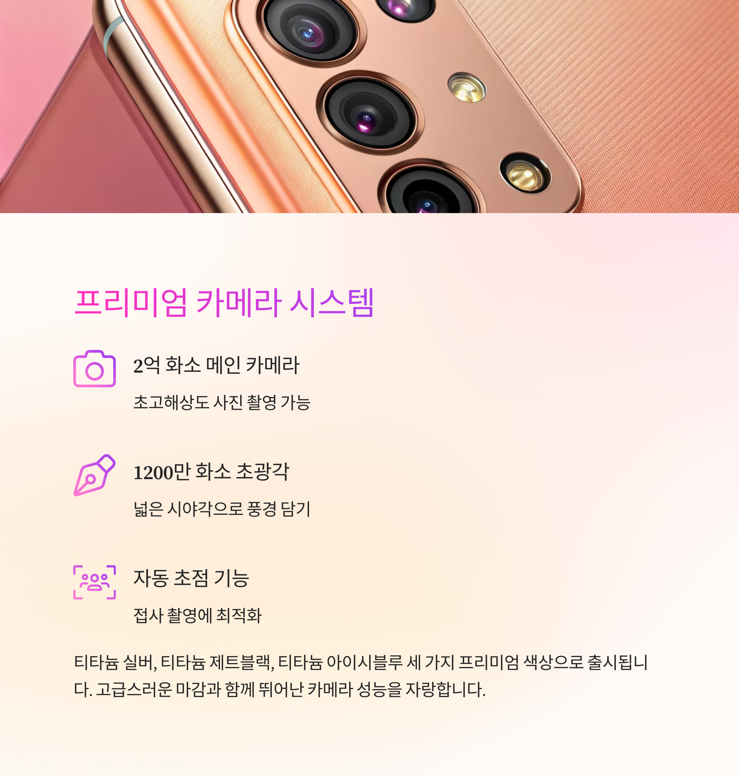 색상은 티타늄 실버, 티타늄 제트블랙, 티타늄 아이시블루 세 가지로 출시됩니다.