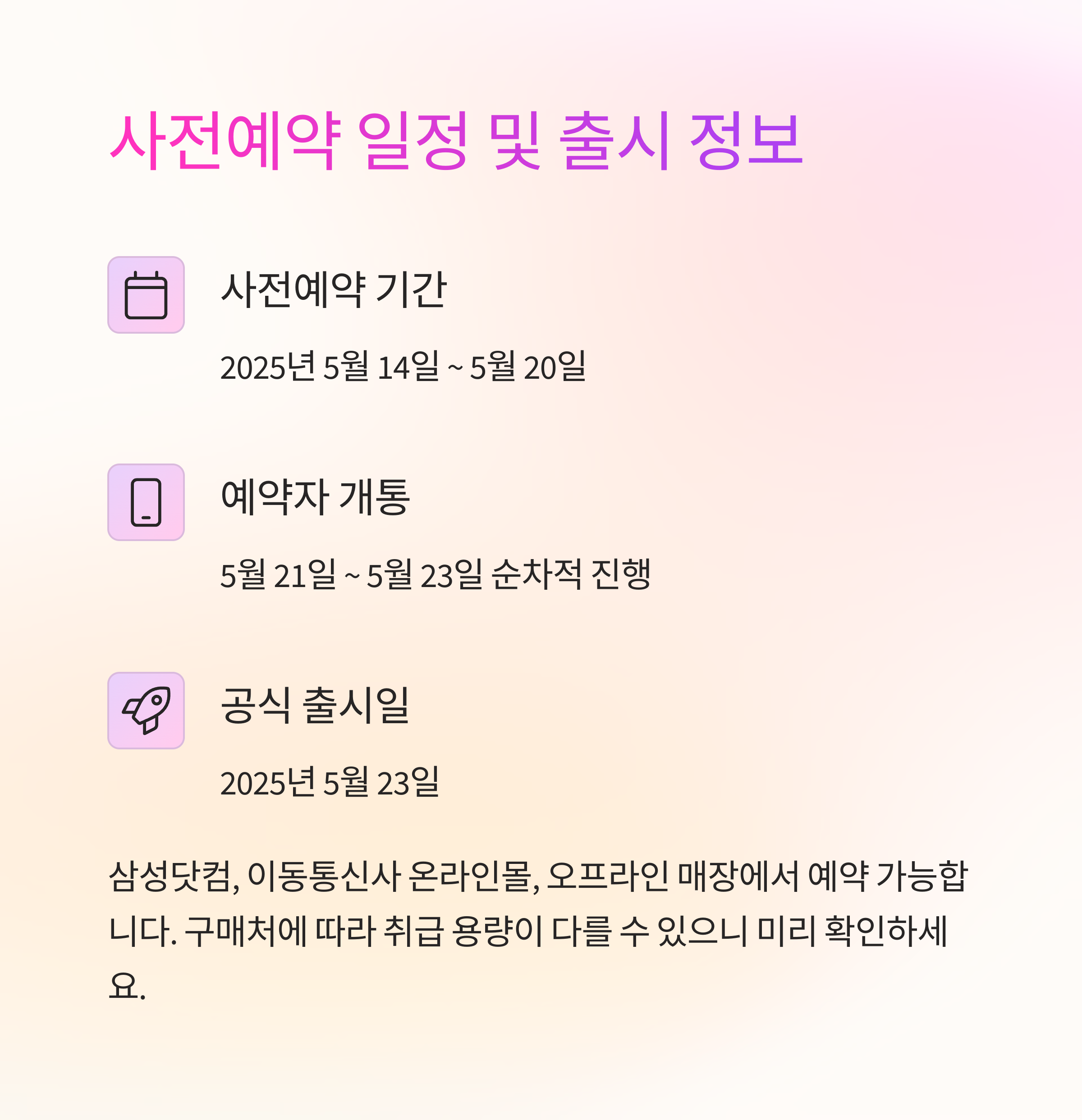 사전예약 일정 및 출시일