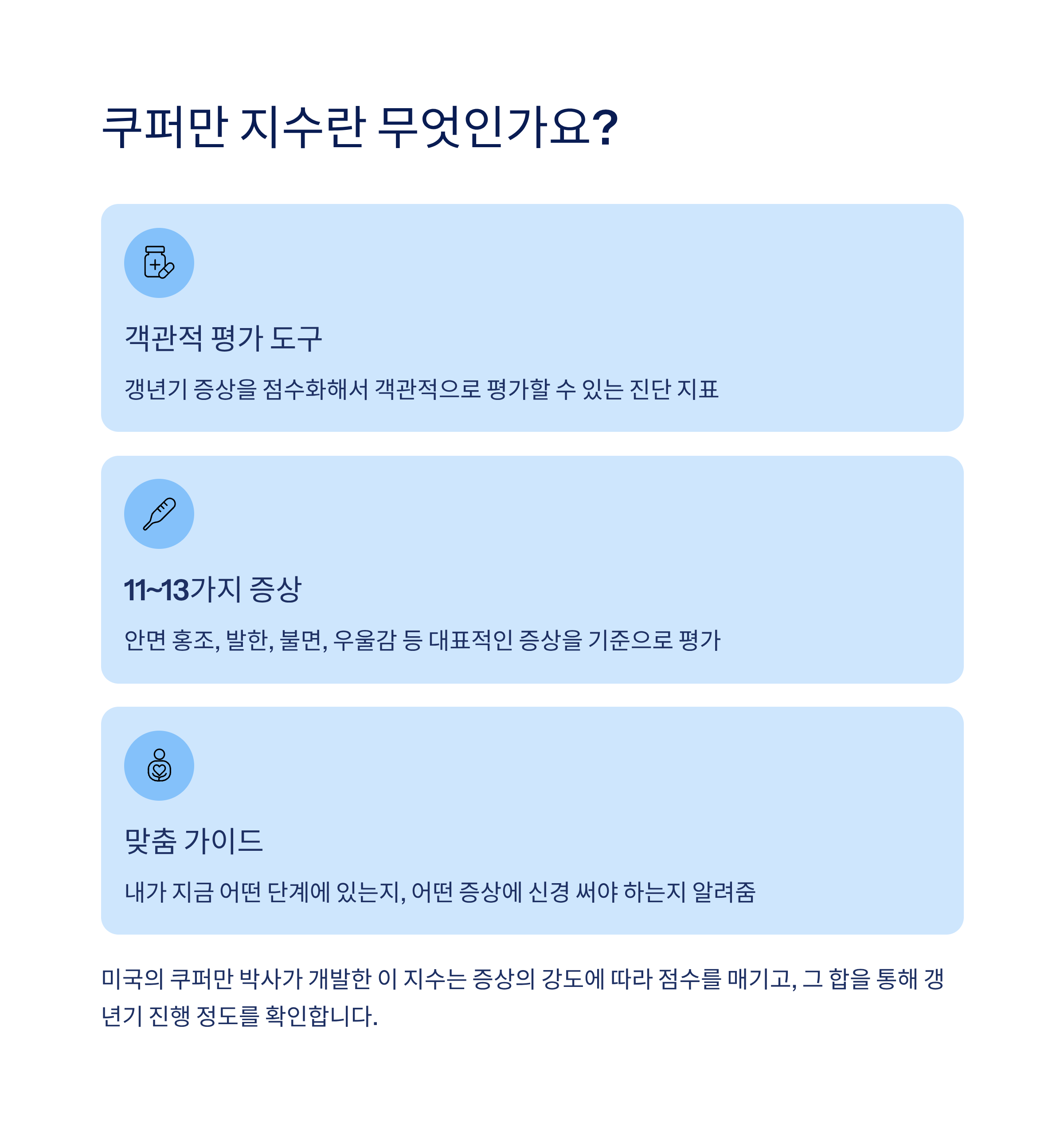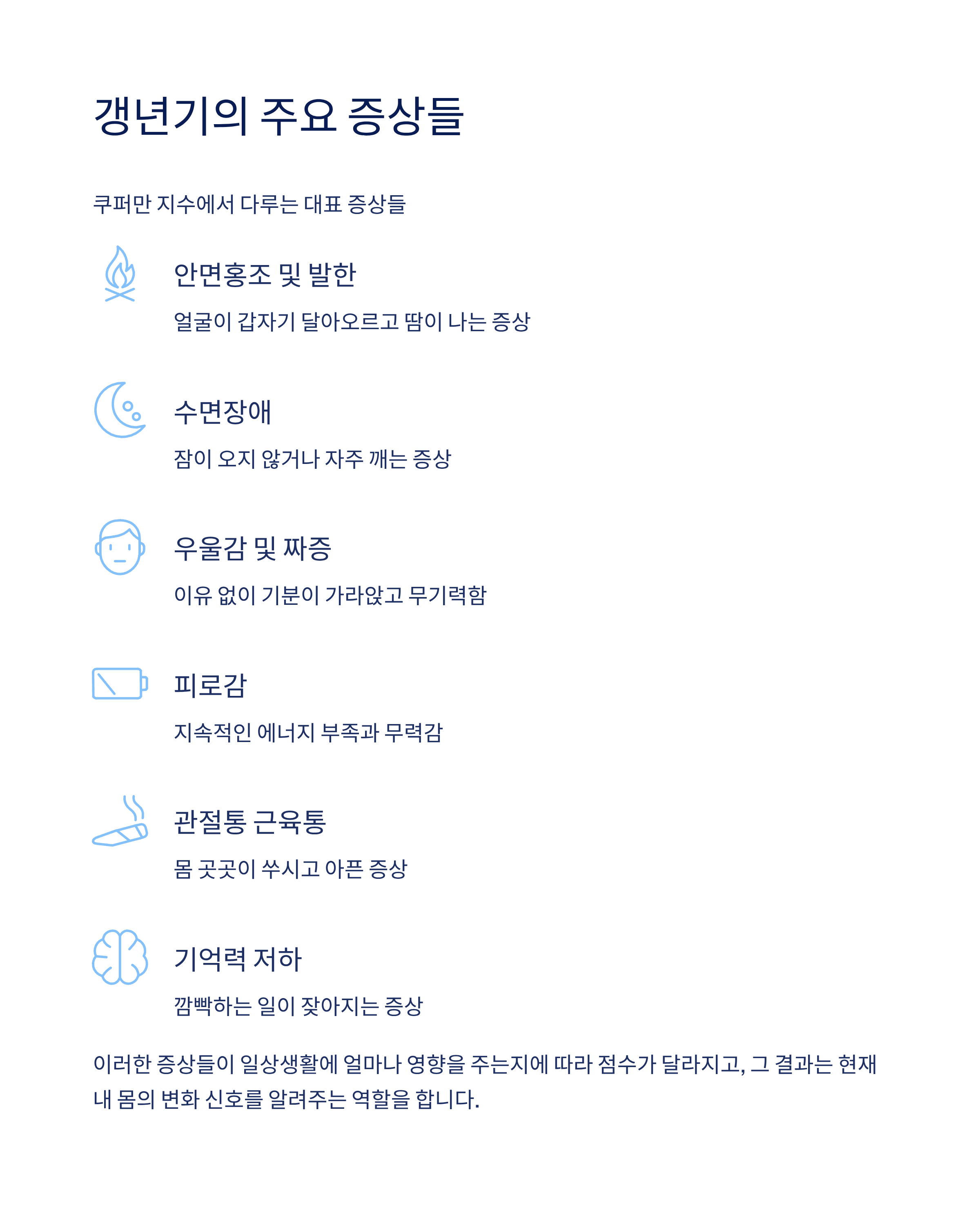 갱년기 자가진단의 대표 도구인 쿠퍼만 지수는