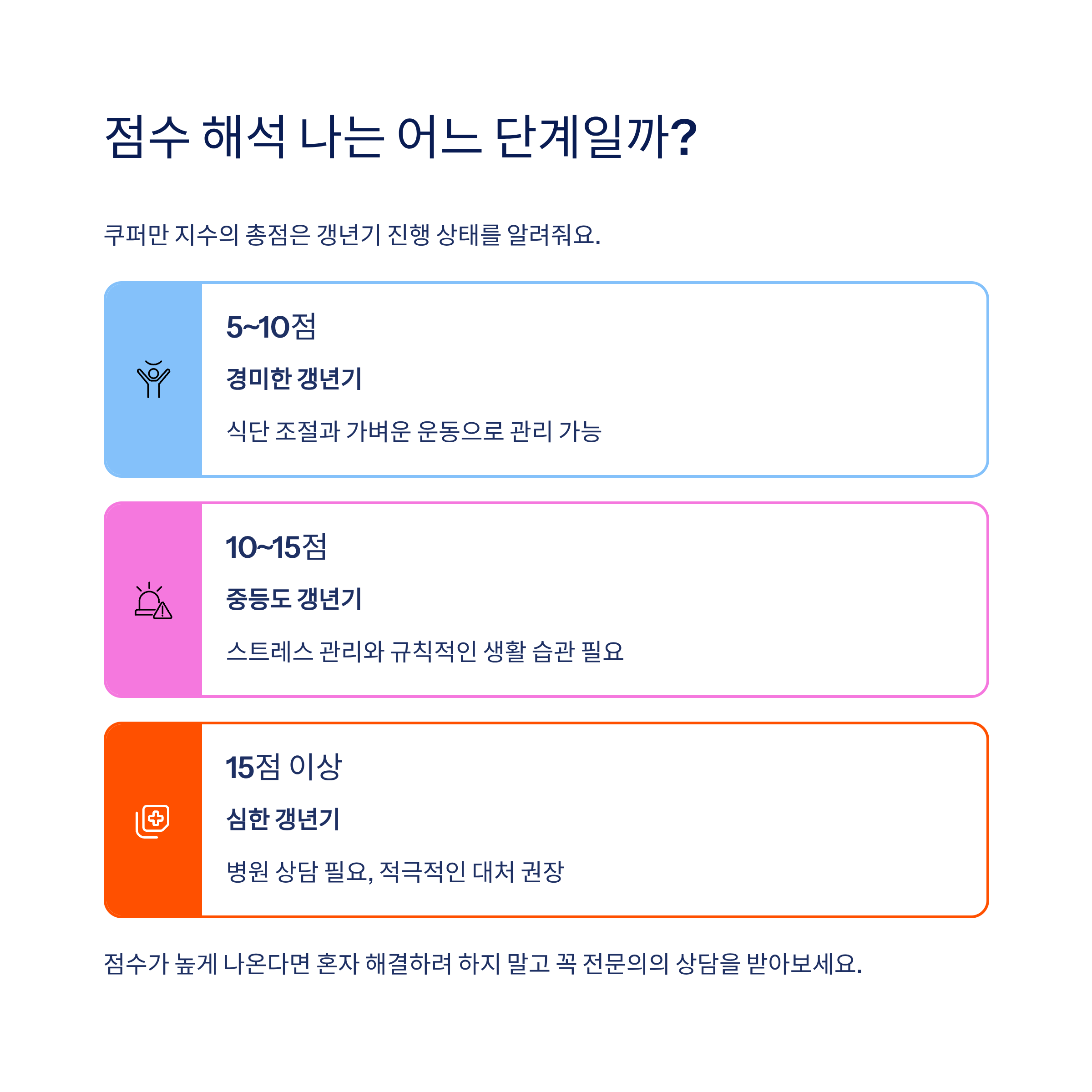 | 점수 | 구간갱년기 | 단계관리 팁 |