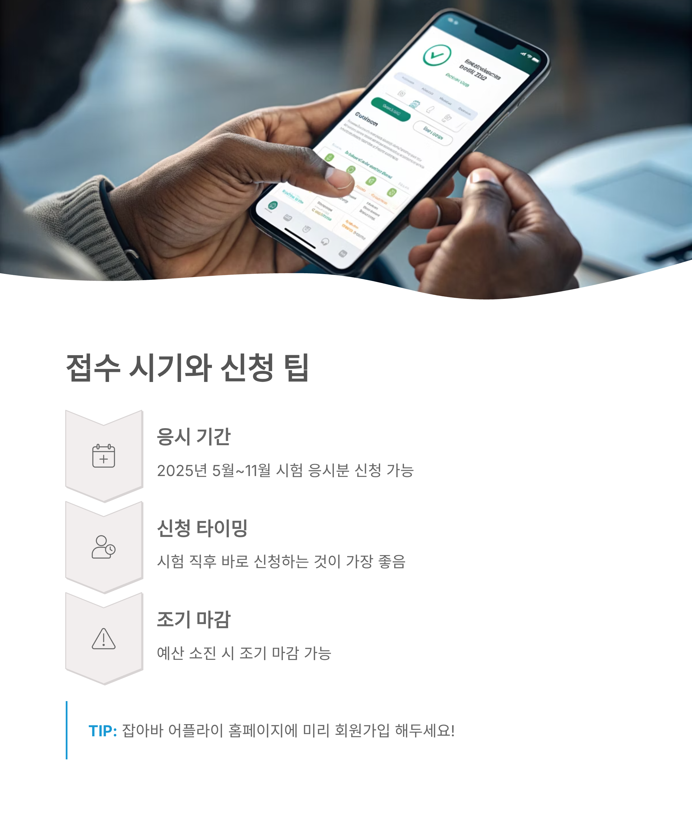 보통 각 시군별로 접수 기간이 달라지고 예산 소진 시 조기 마감될 수 있으니, 시험을 본 직후 바로 신청하는 것이 가장 좋아요.