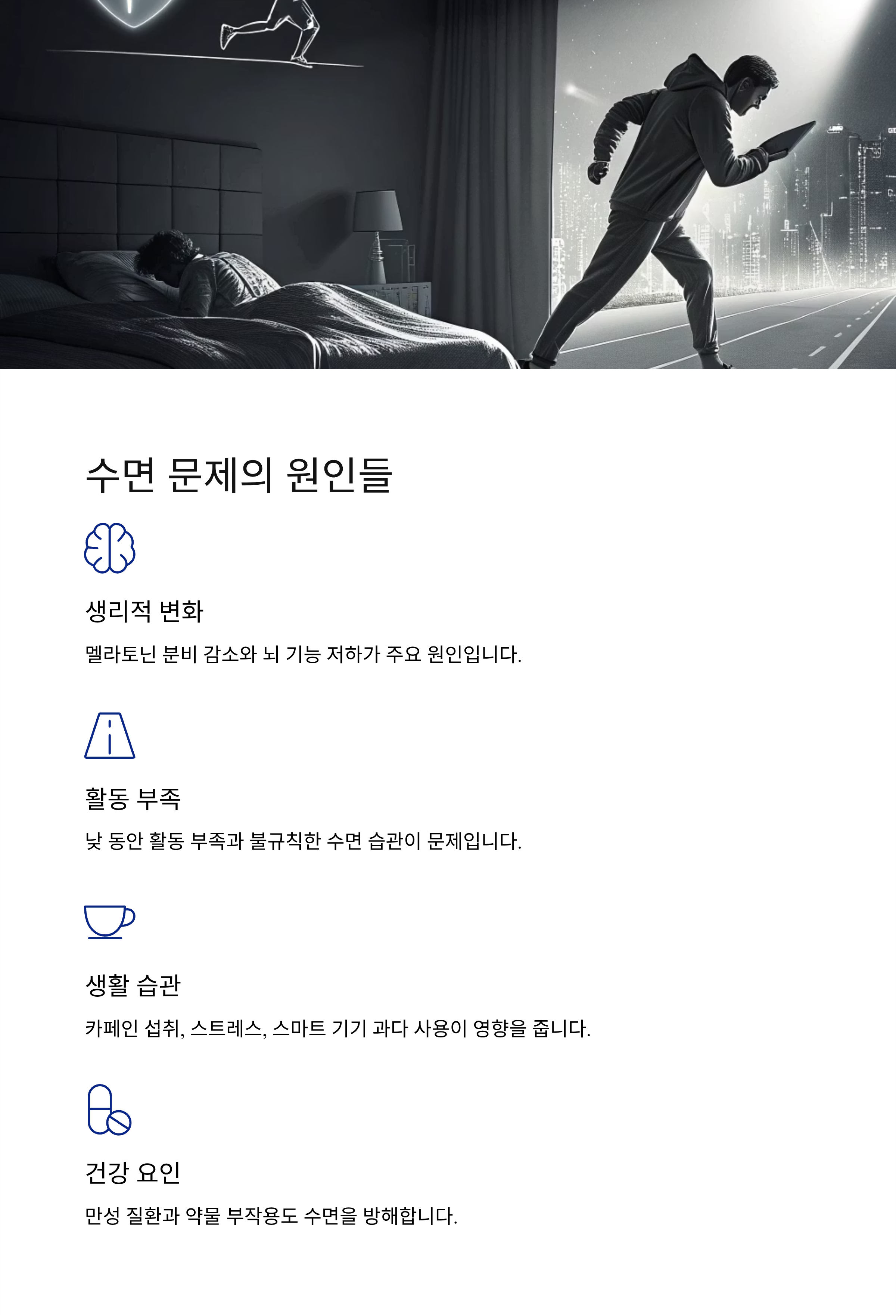 고령층의 수면 문제는 복합적 요인에서 비롯됩니다.