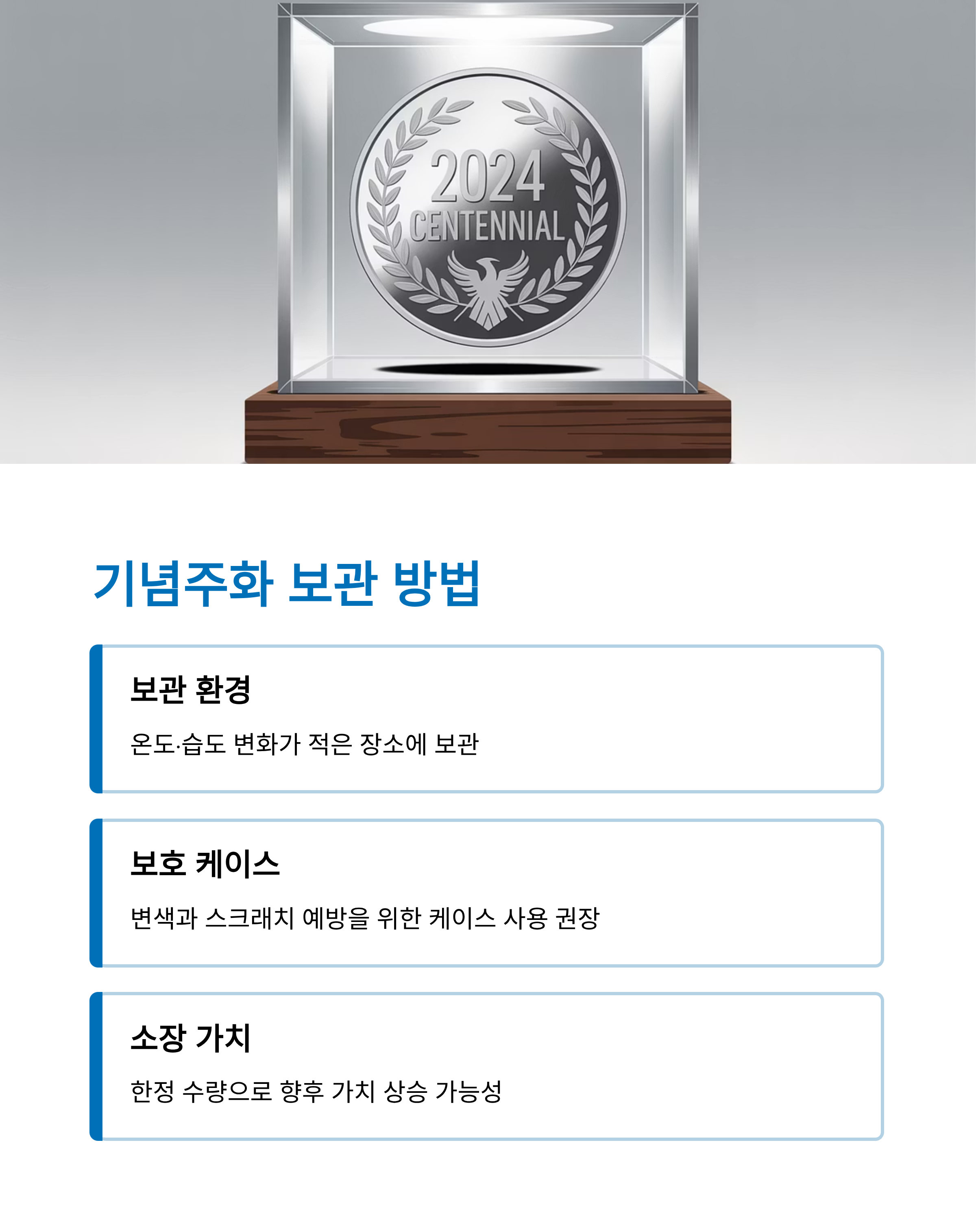 기념주화는 온도·습도 변화가 적은 장소에서 보관하는 것이 좋습니다.