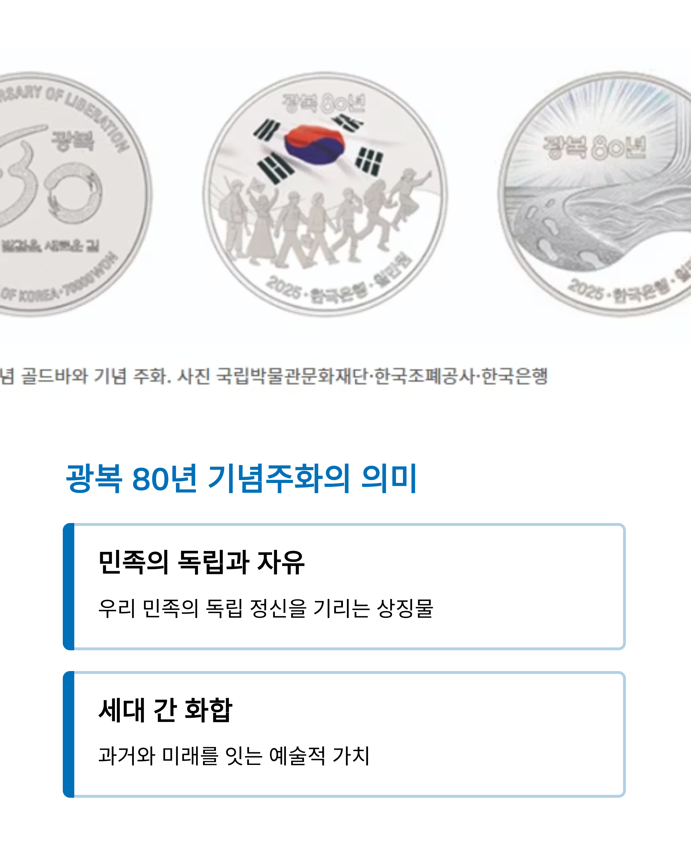 광복 80년 기념주화는 우리 민족의 독립과 자유를 기리는 동시에