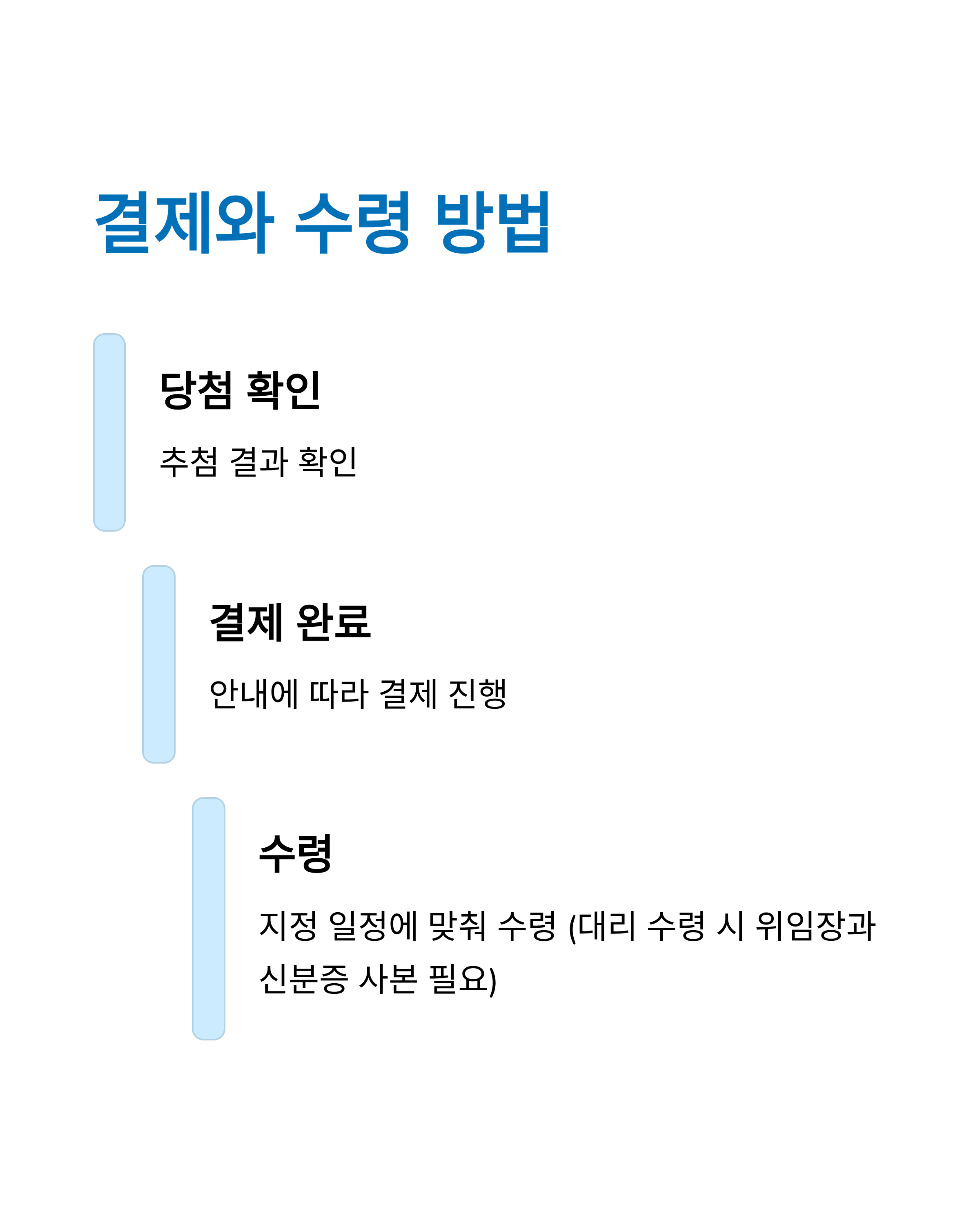 대리 수령 시 위임장과 신분증 사본을 반드시 지참해야 합니다.