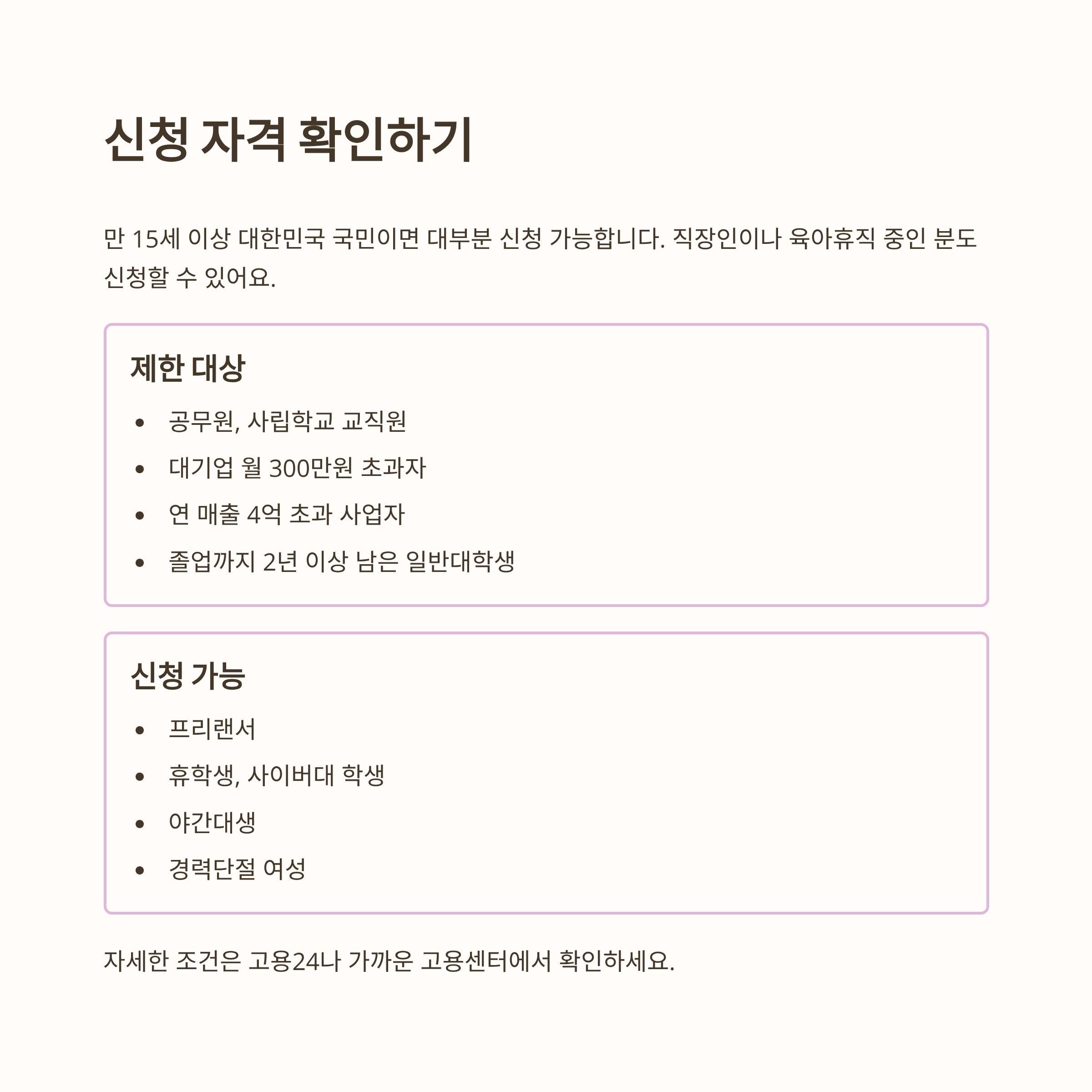 자세한 조건은 고용24나 가까운 고용센터에서 확인할 수 있어요.