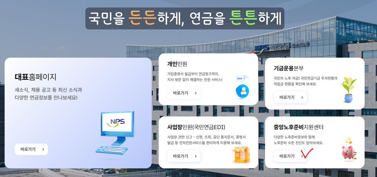 - 국민연금공단 전자민원서비스 접속