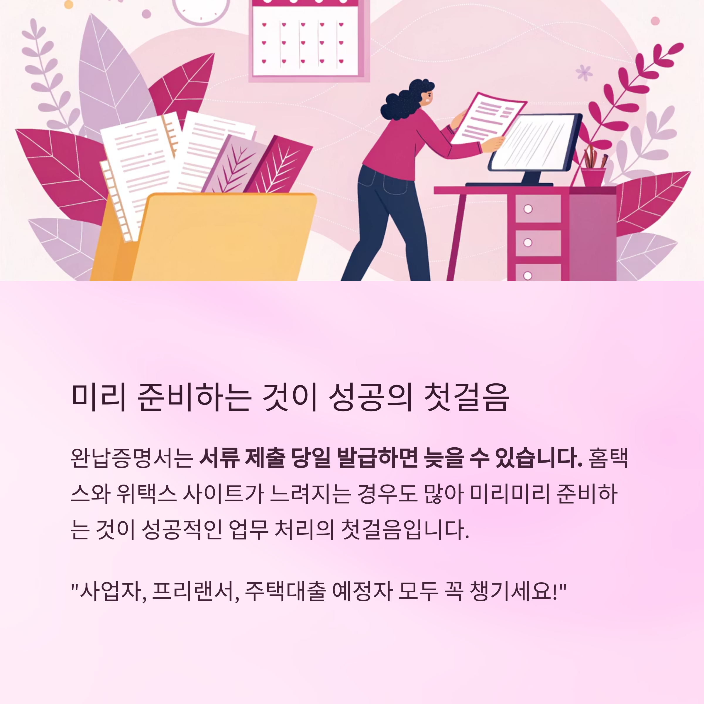 미리미리 준비하는 것이 성공적인 업무 처리의 첫걸음입니다.