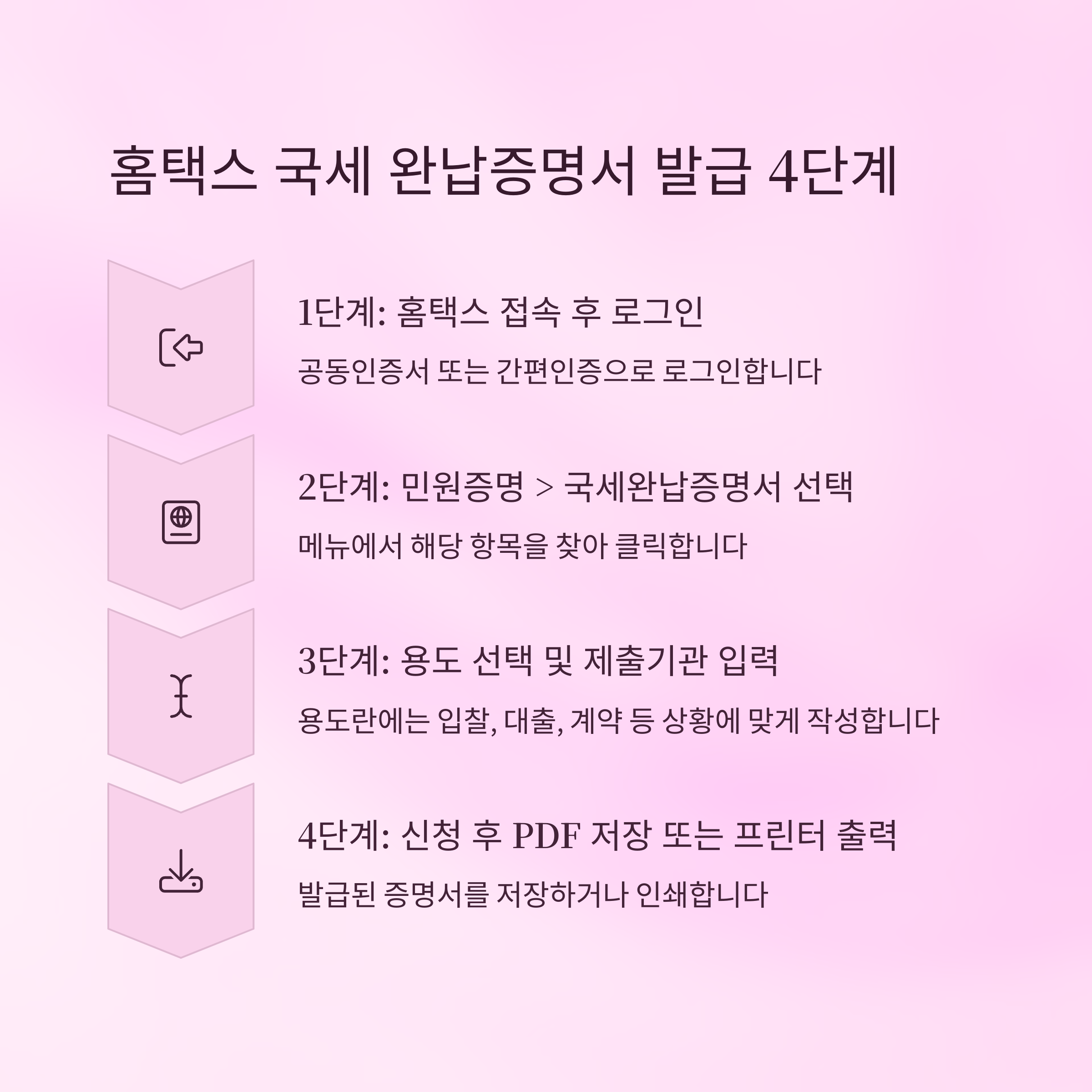 발급 절차 시나리오: 홈택스에서 국세 완납증명서 출력하기