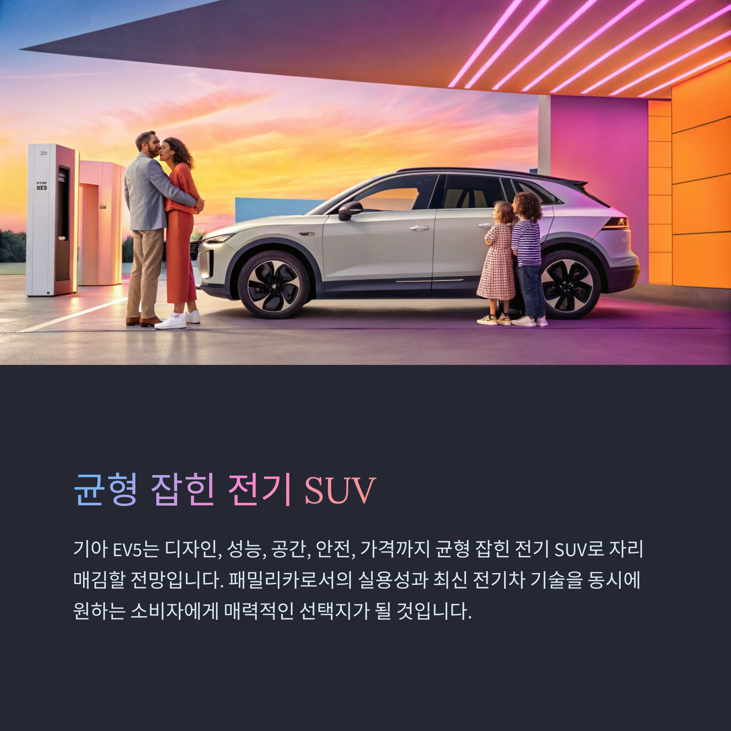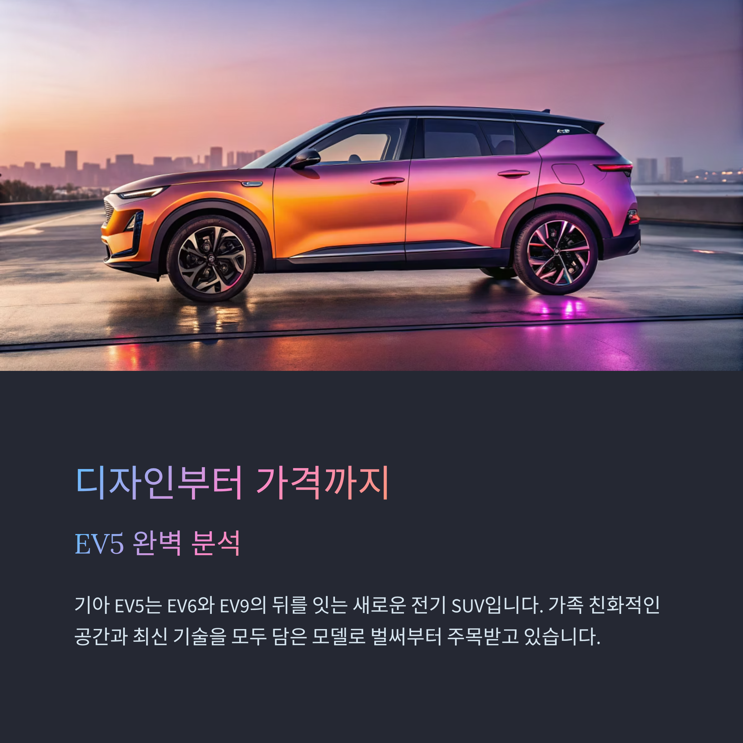 기아 EV5는 디자인, 성능, 공간, 안전, 가격까지 균형 잡힌 전기 SUV로 자리매김할 전망입니다. 패밀리카로서의 실용성과 최신 전기차 기술을 동시에 원하는 소비자에게 매력적인 선택지가 될 것입니다.