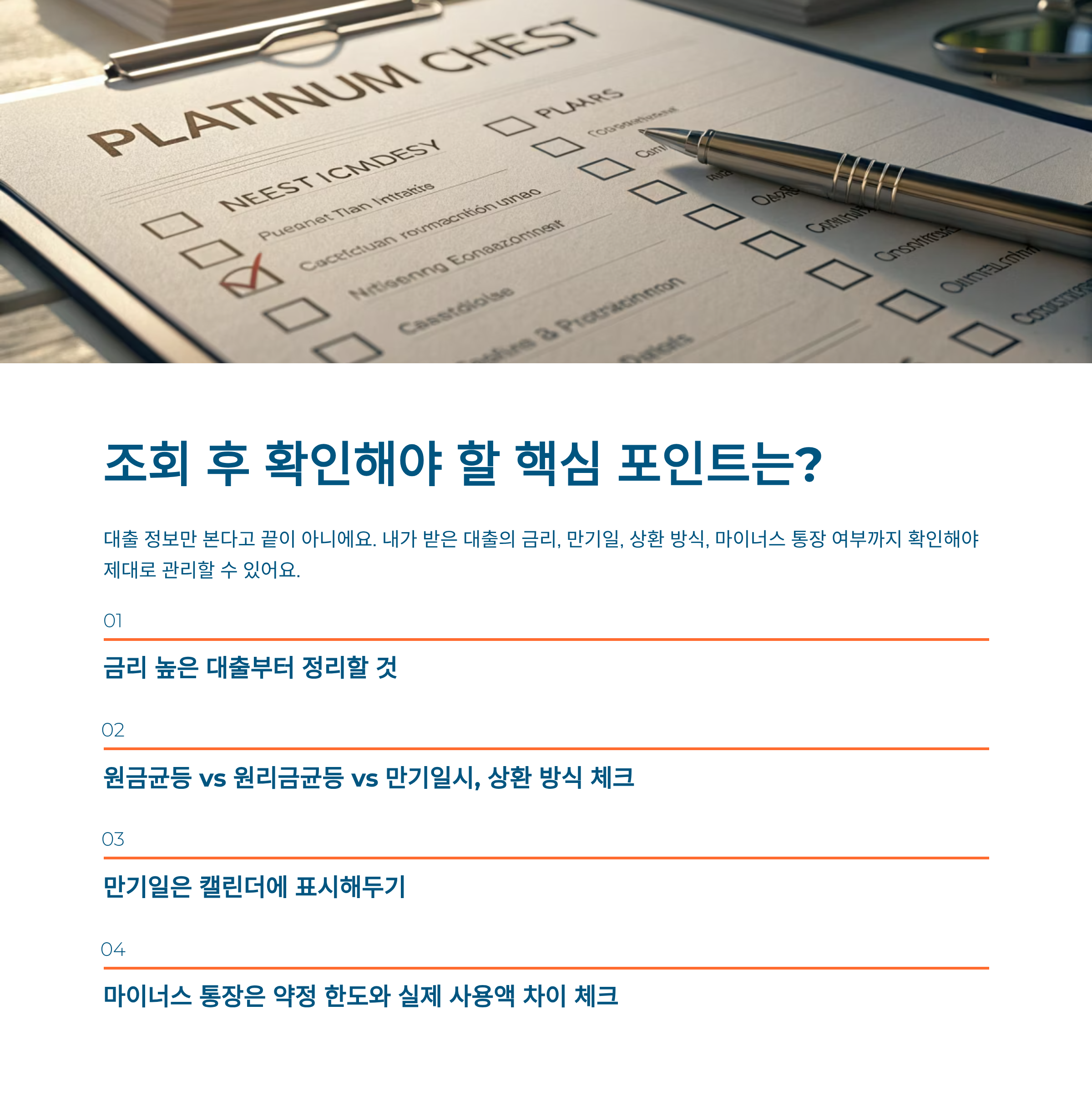 내가 받은 대출의 금리, 만기일, 상환 방식, 마이너스 통장 여부까지 확인해야 제대로 관리할 수 있어요.