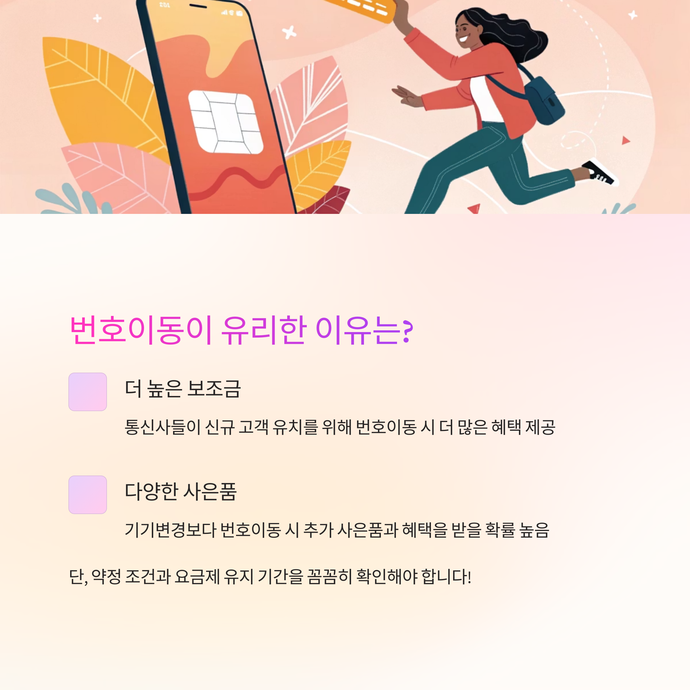 단, 번호이동 시 약정 조건이나 요금제 유지 기간을
