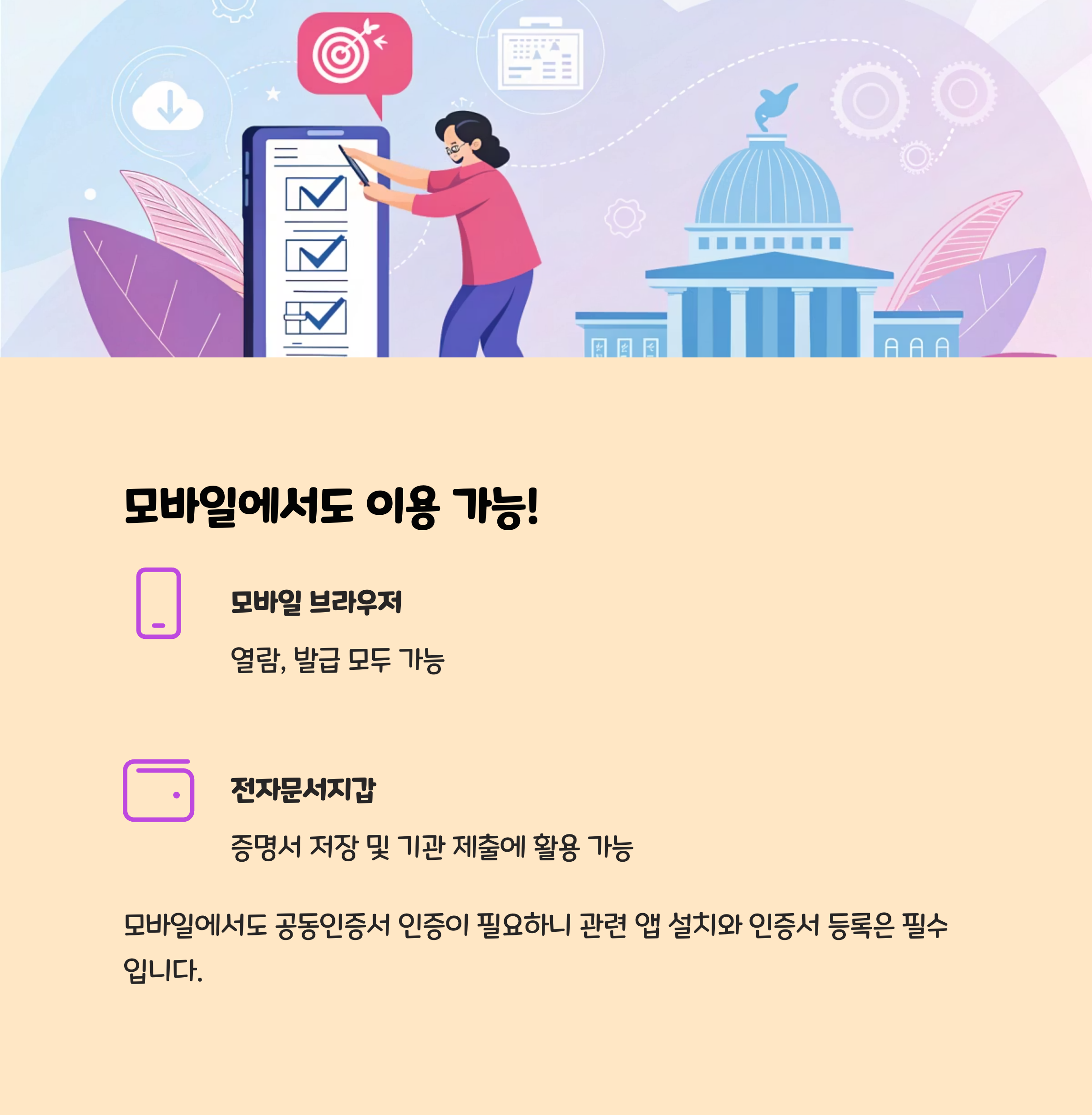 | 모바일 브라우저 | 열람, 발급 모두 가능 |