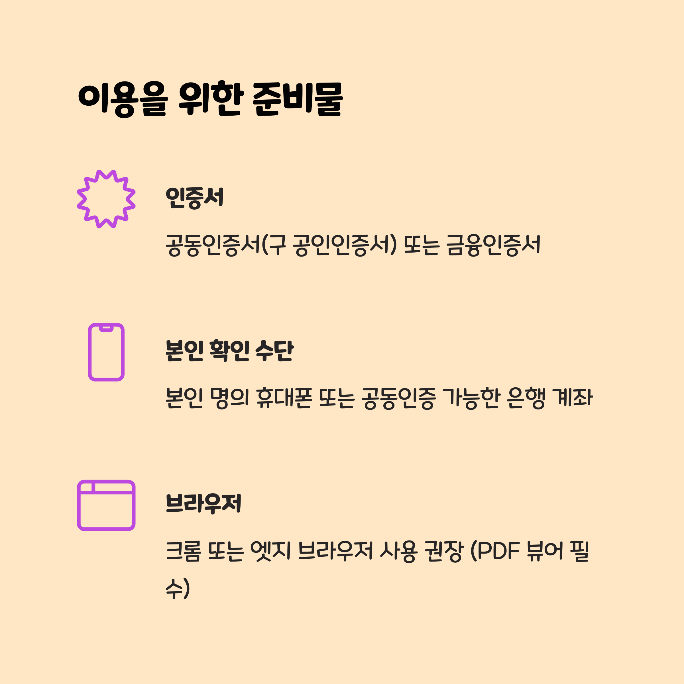 다음 준비물이 있어야 서비스를 이용할 수 있어요.