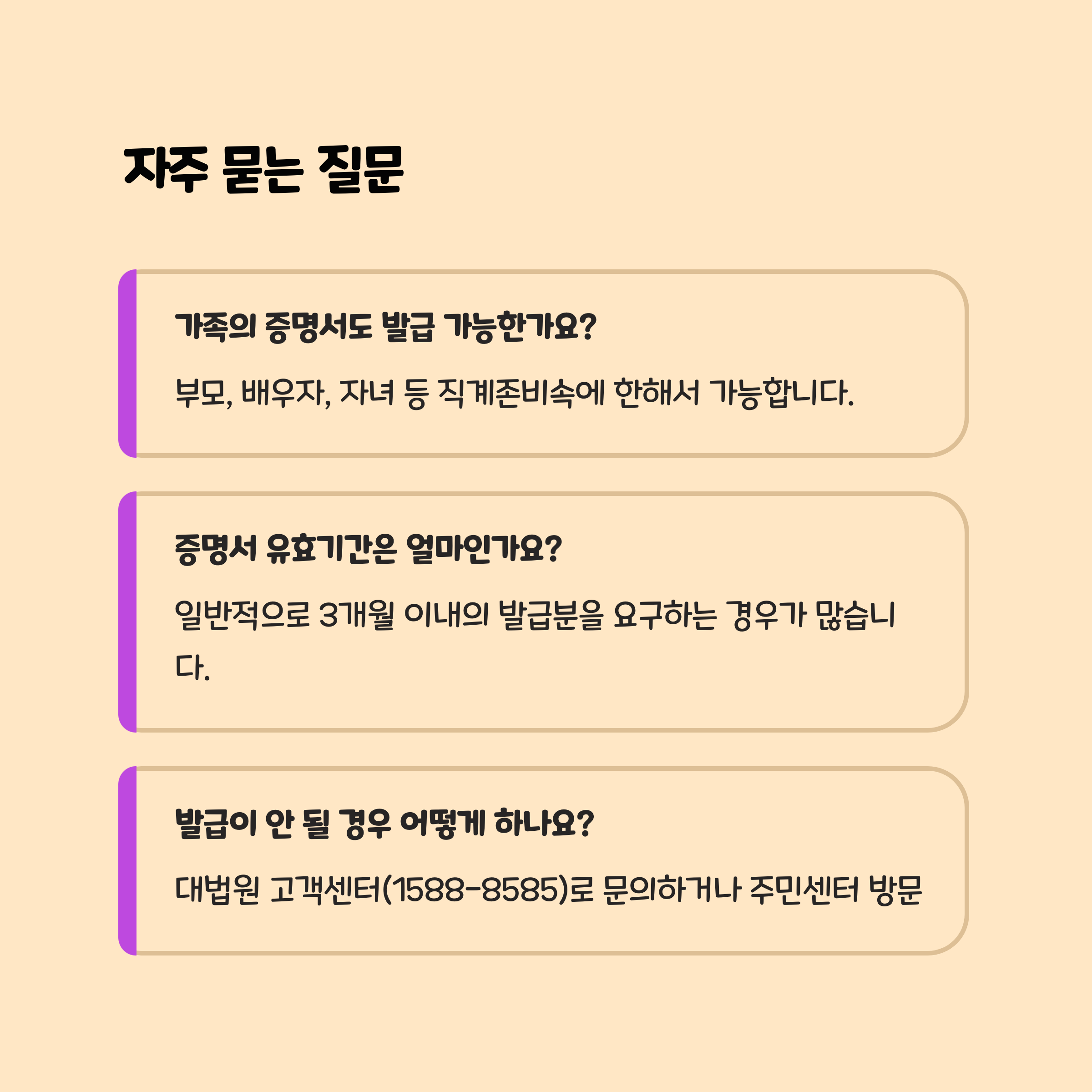 | 가족관계증명서 | 재산 상속, 병원, 학교 행정 등 다용도 |