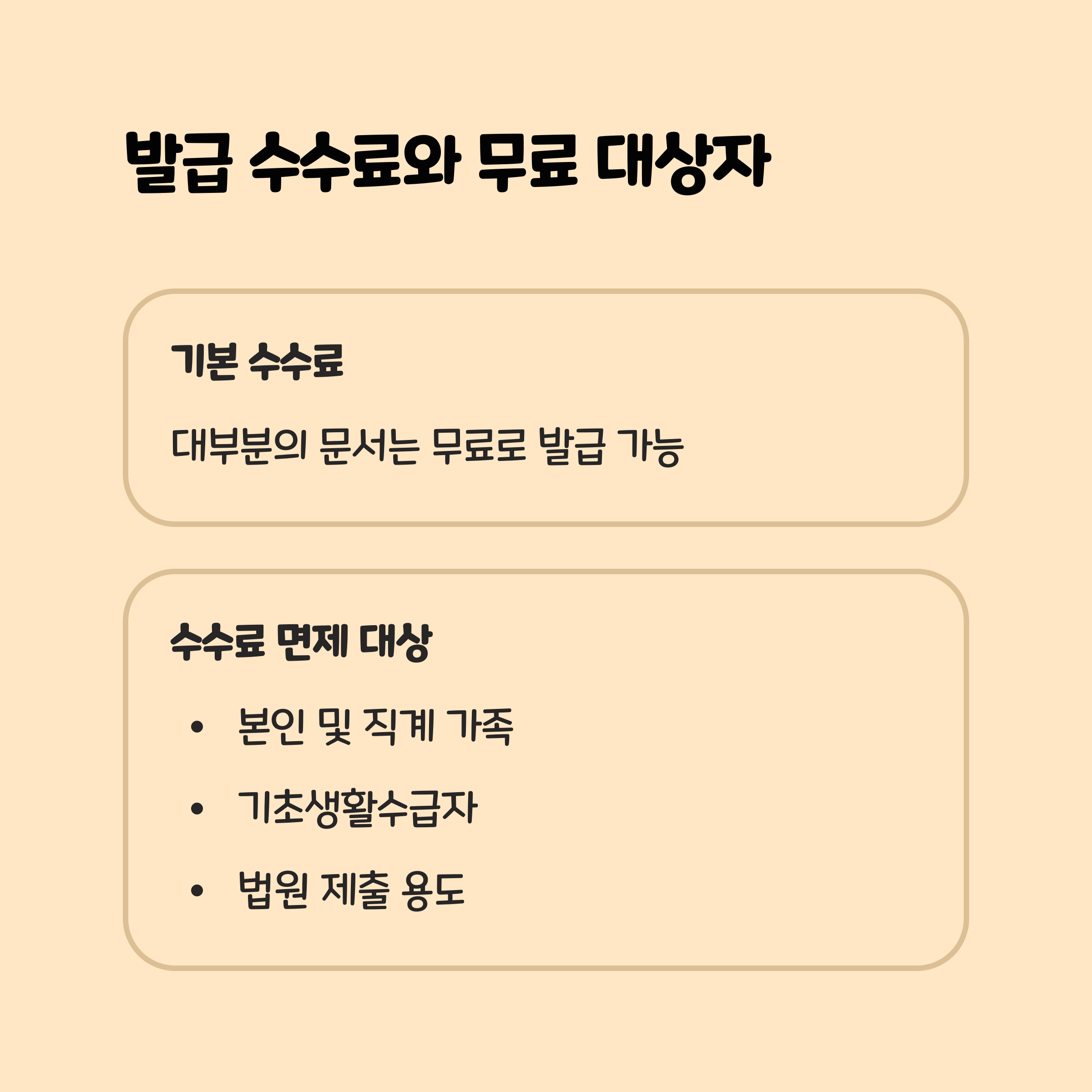 발급 수수료와 무료 대상자 확인