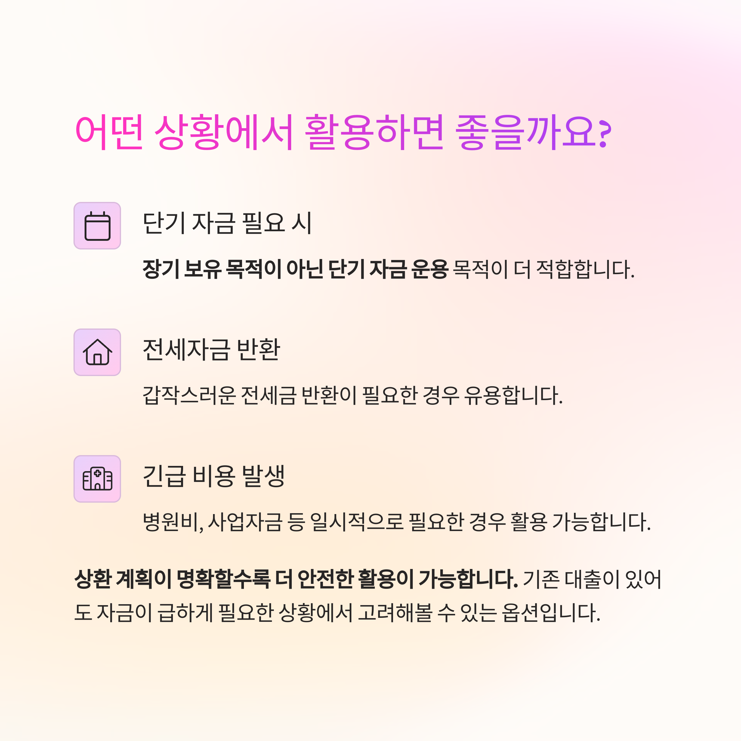 상환 계획이 명확할수록 더 안전한 활용이 가능합니다.