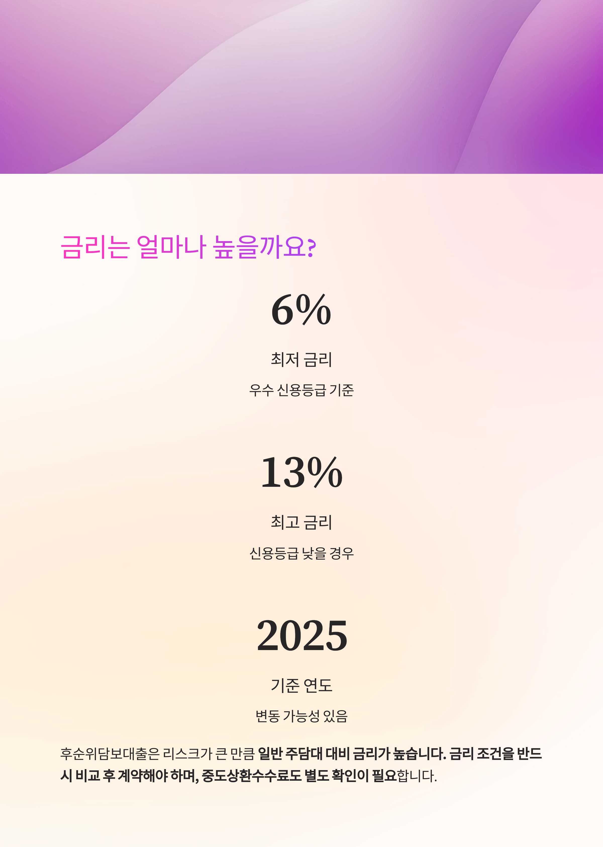 2025년 기준, 6%~13% 수준의 변동금리가 일반적입니다.
