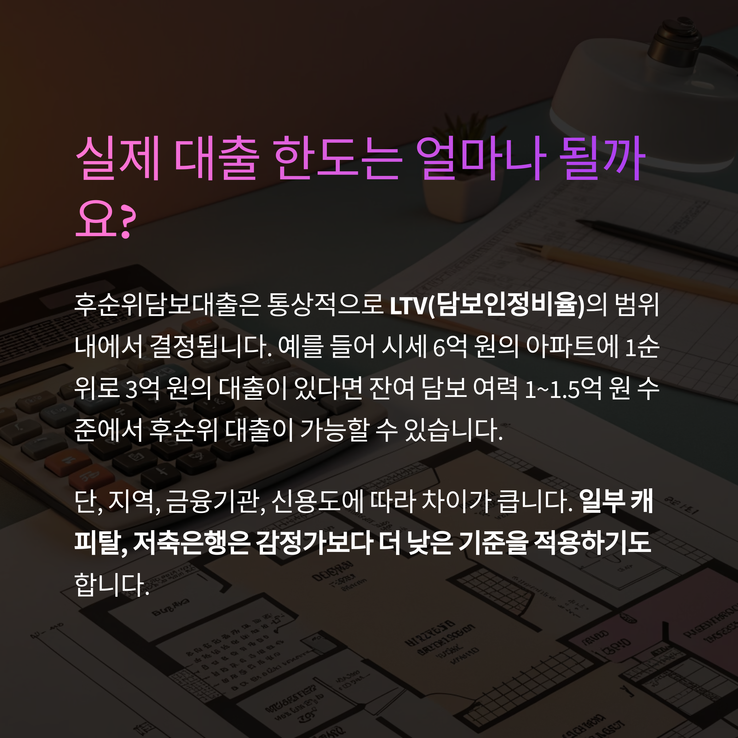 후순위담보대출은 통상적으로 **LTV(담보인정비율)**의 범위 내에서 결정됩니다.