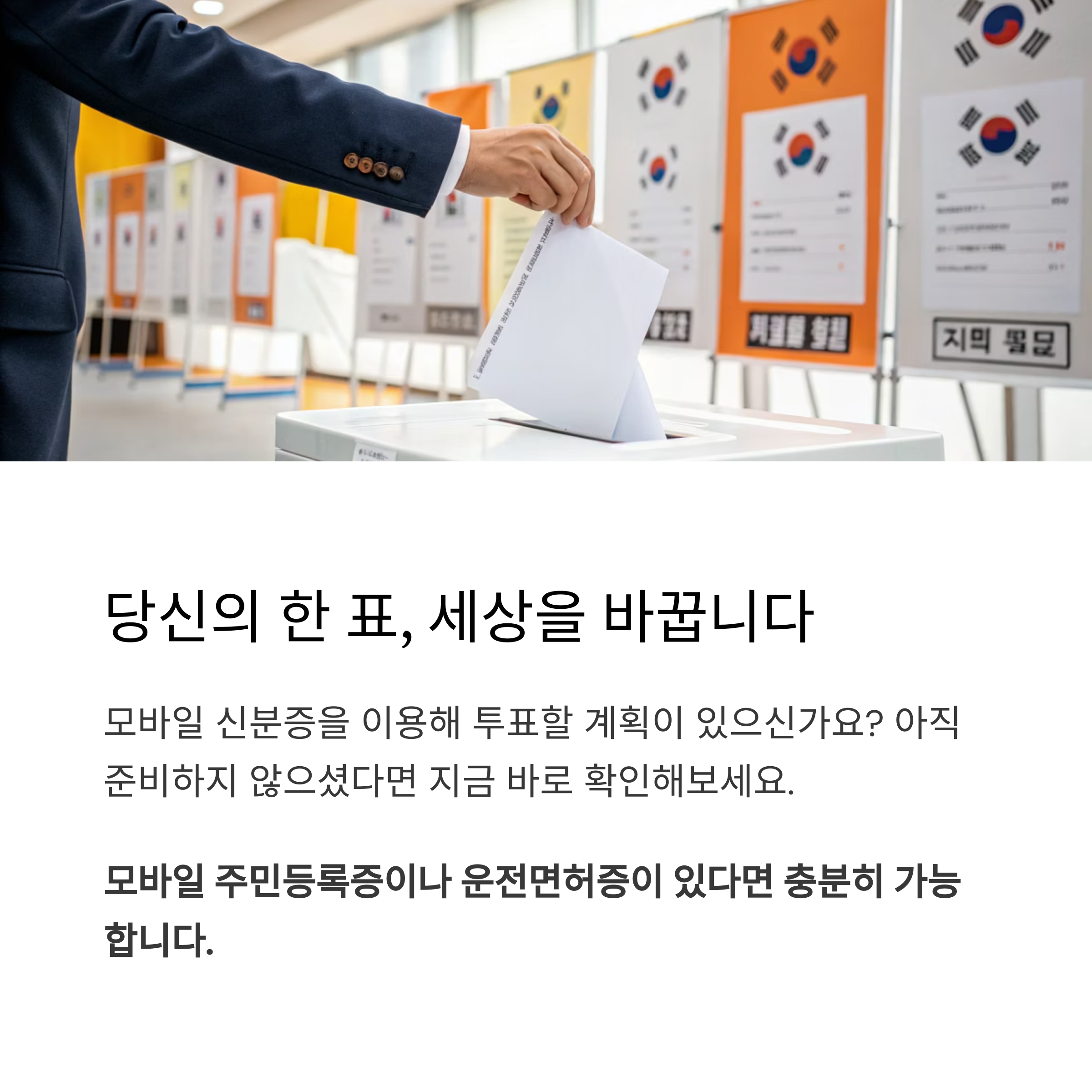 대통령 선거 당일, 신분증은 본인 확인을 위한 필수 준비물입니다.