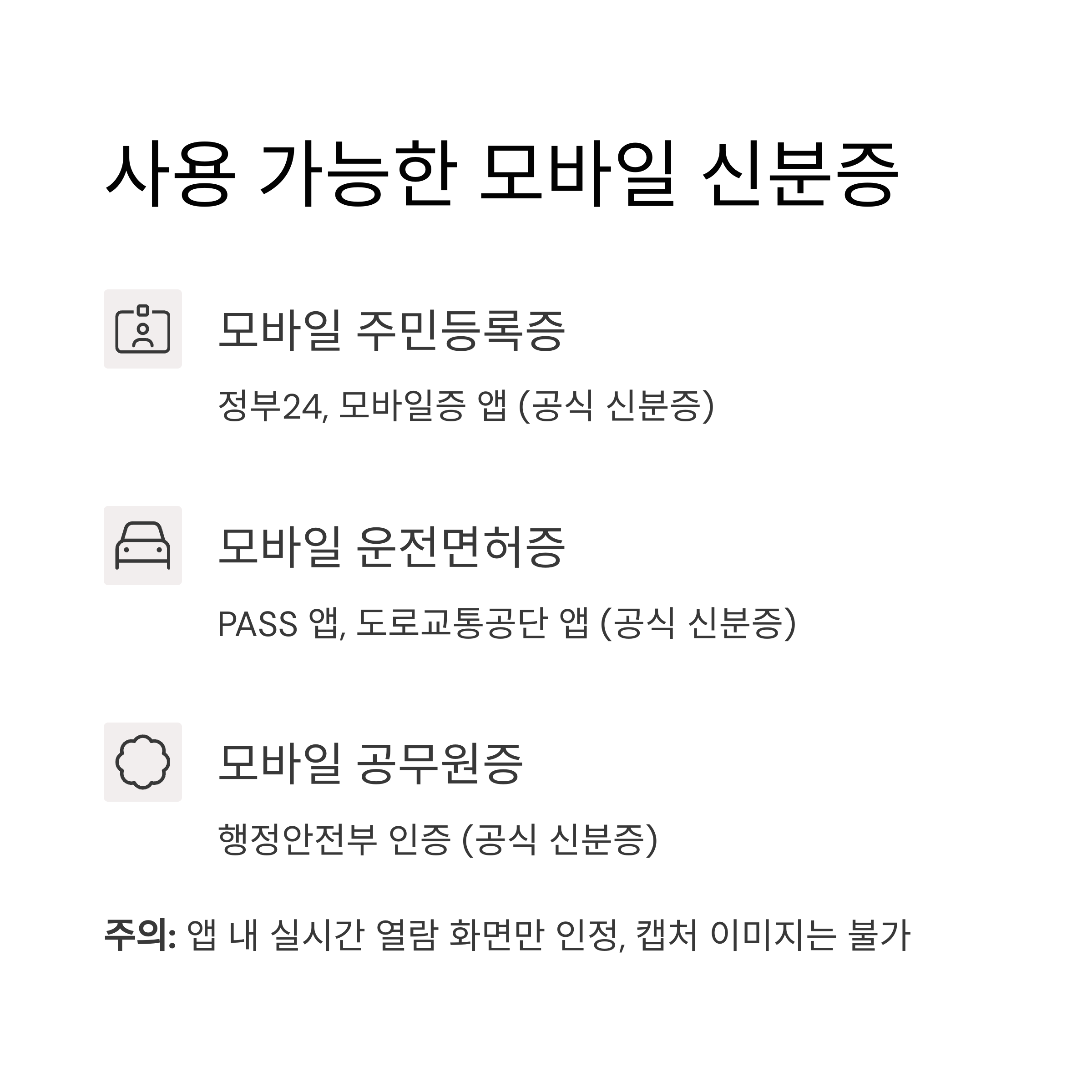 공적 신분 확인 수단으로 인정되지 않으므로 주의가 필요합니다.