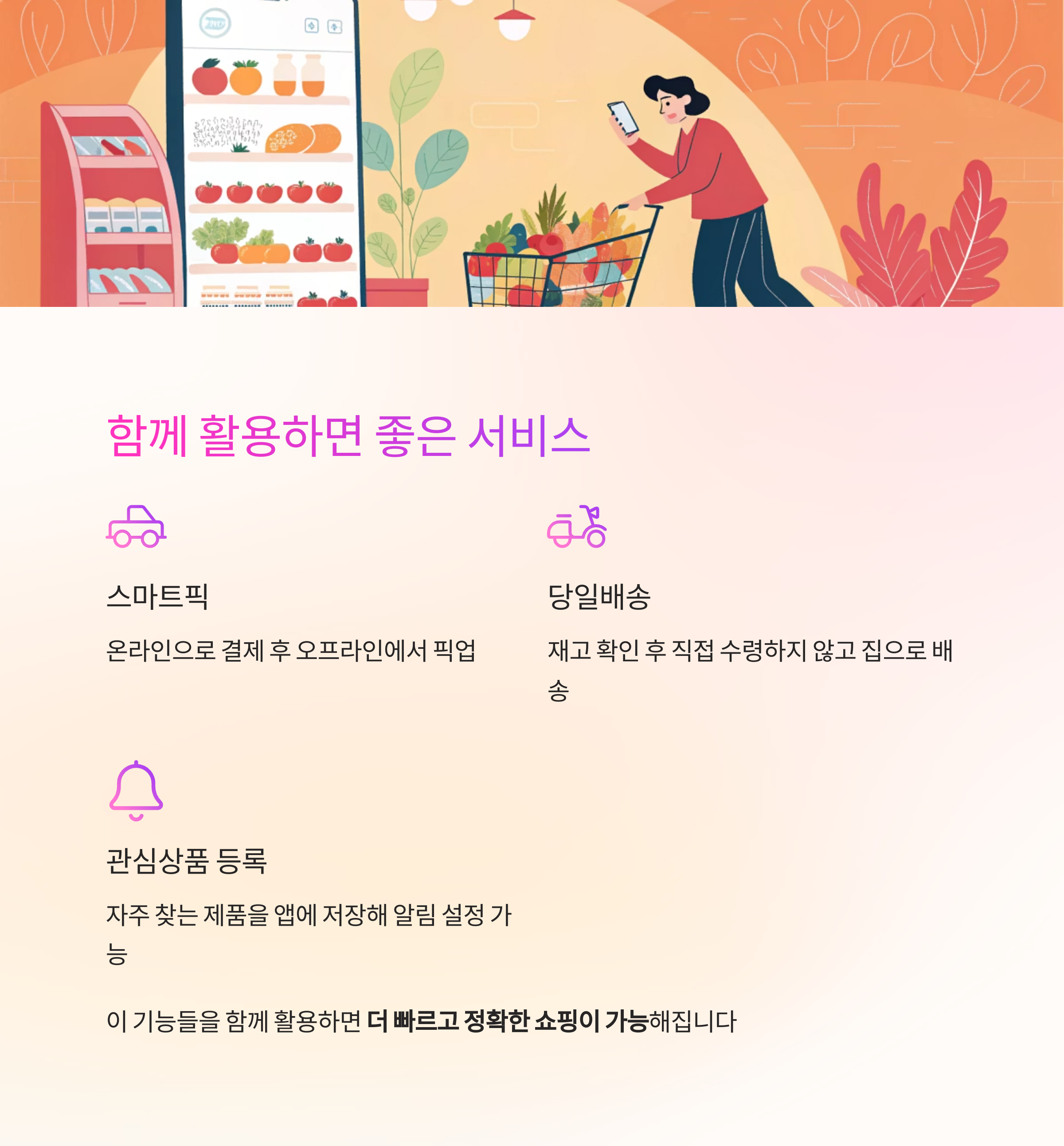 혼잡한 마트에서 허탕치는 일 없이 원하는 물건만 쏙쏙 골라 담을 수 있겠죠