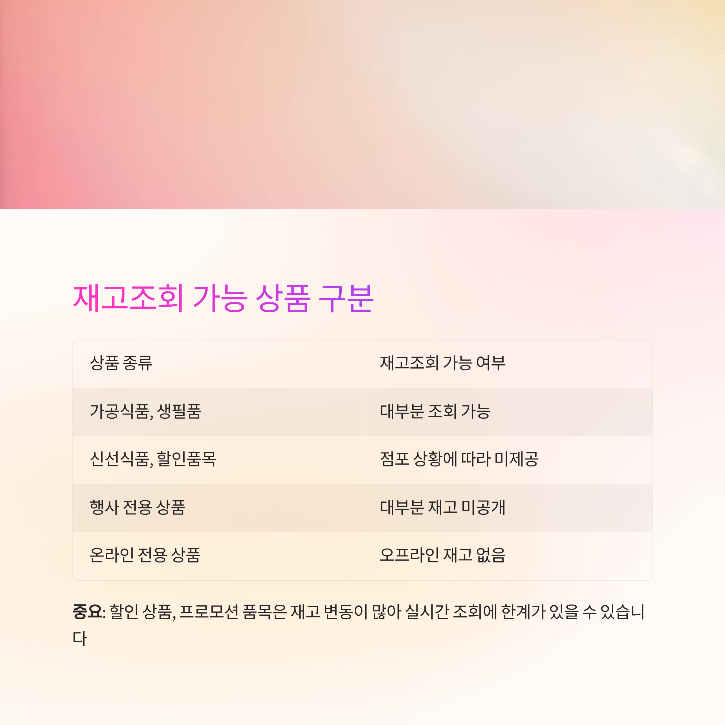 | 행사 전용 상품 | 대부분 재고 미공개 |