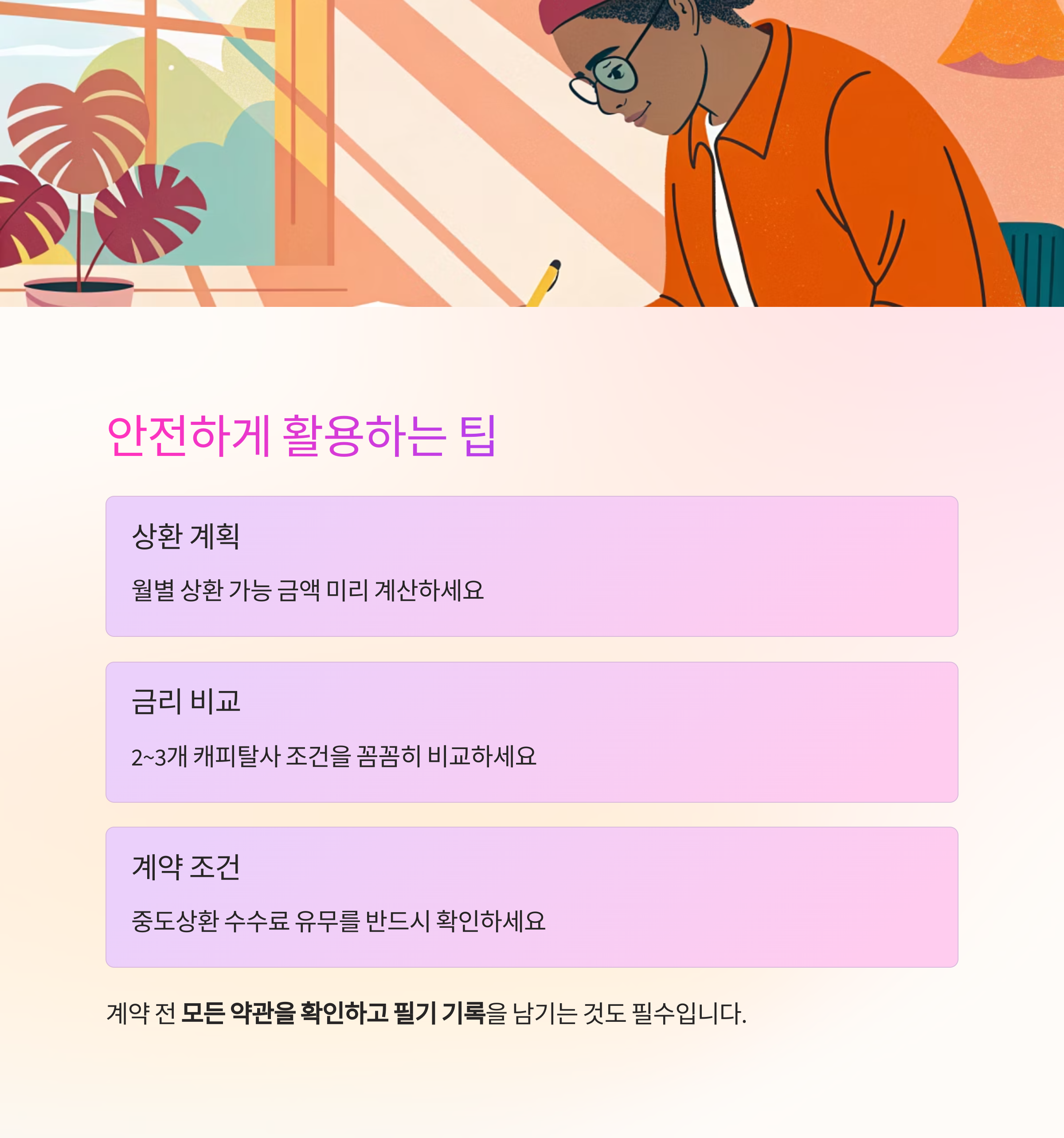 | 금리 비교 | 2~3개 캐피탈사 조건 비교 |