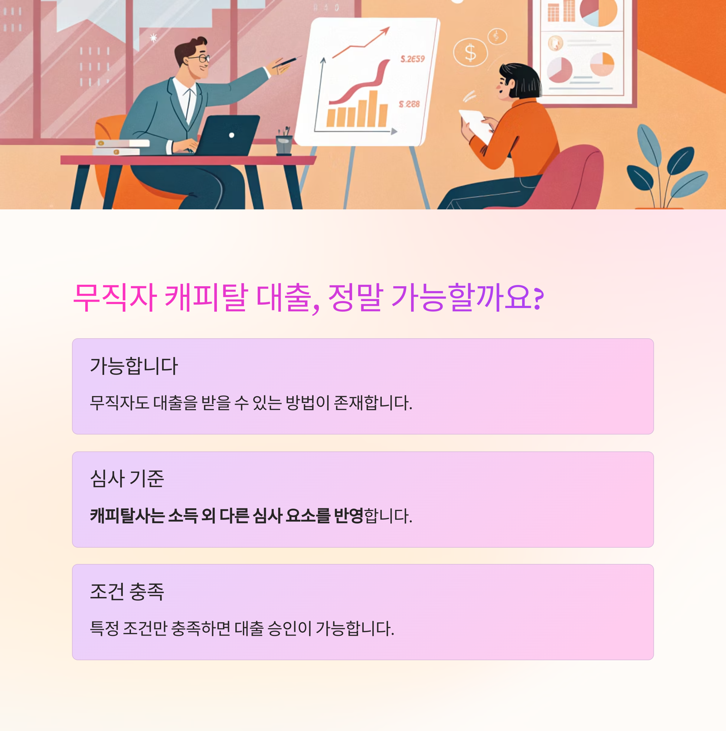 무직자도 일정 조건을 충족하면 캐피탈 대출 가능성이 있습니다