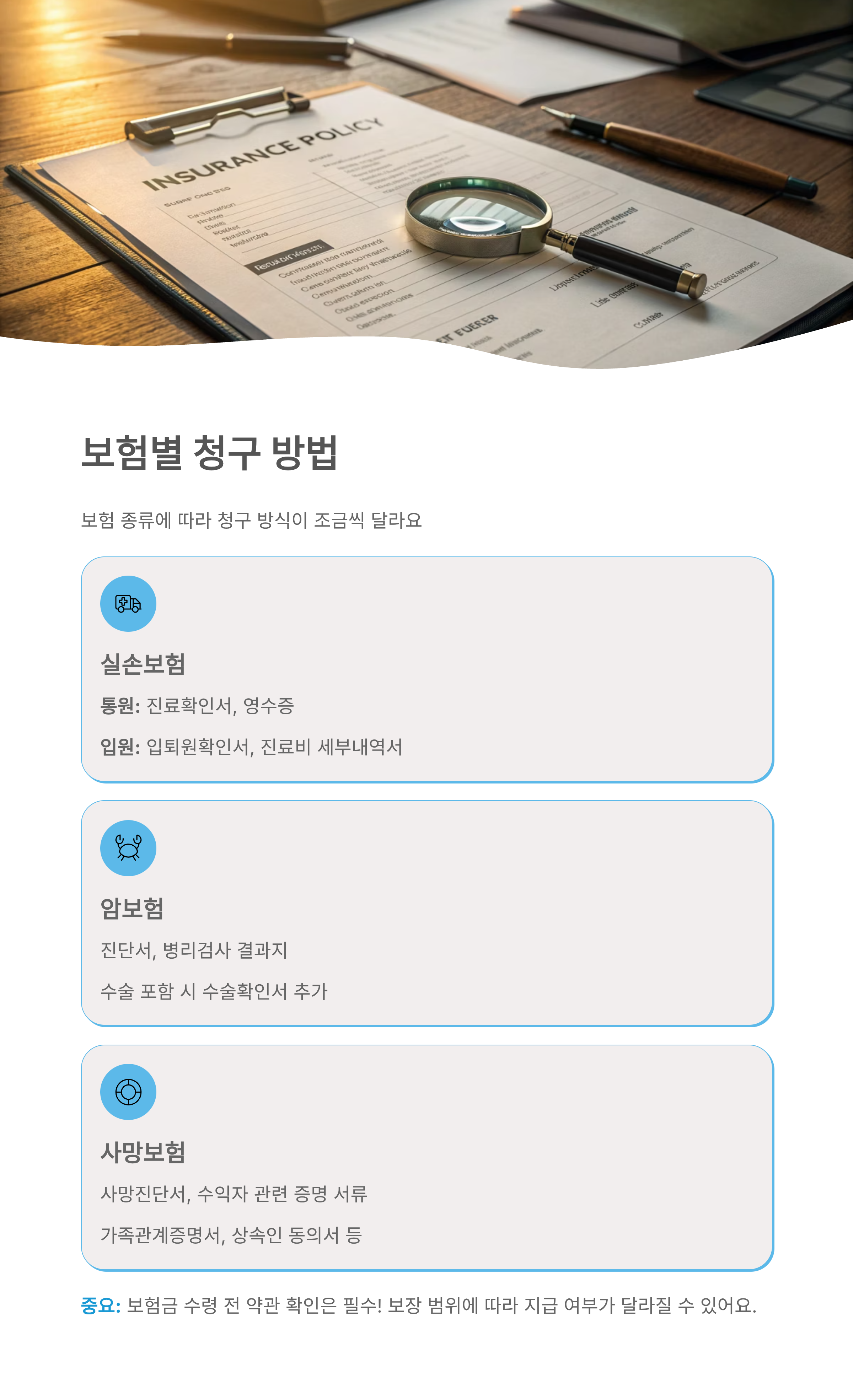 보험 종류에 따라 청구 방식도 조금씩 달라요.