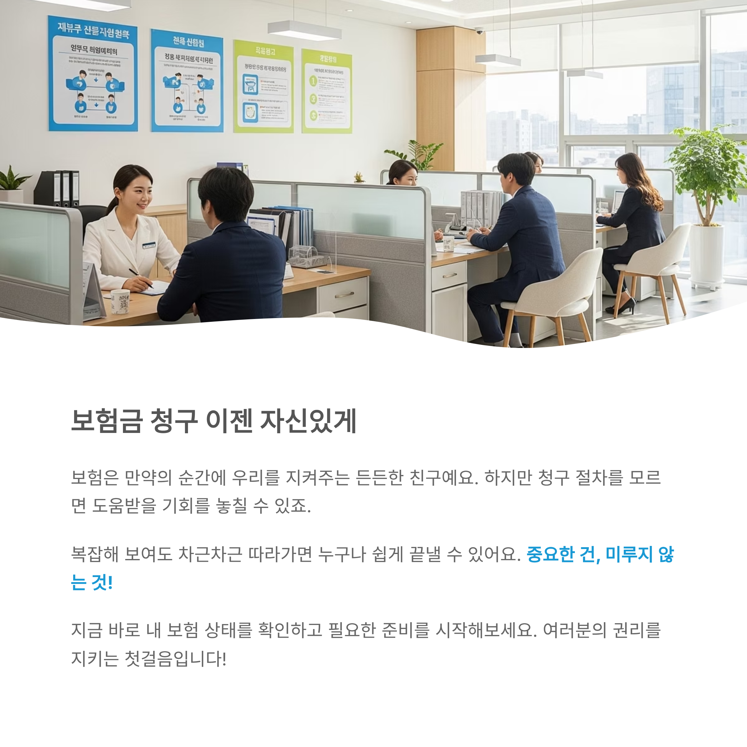 이번 글을 통해 보험금 청구의 전체 그림이 조금은 더 명확해졌다면 좋겠습니다.