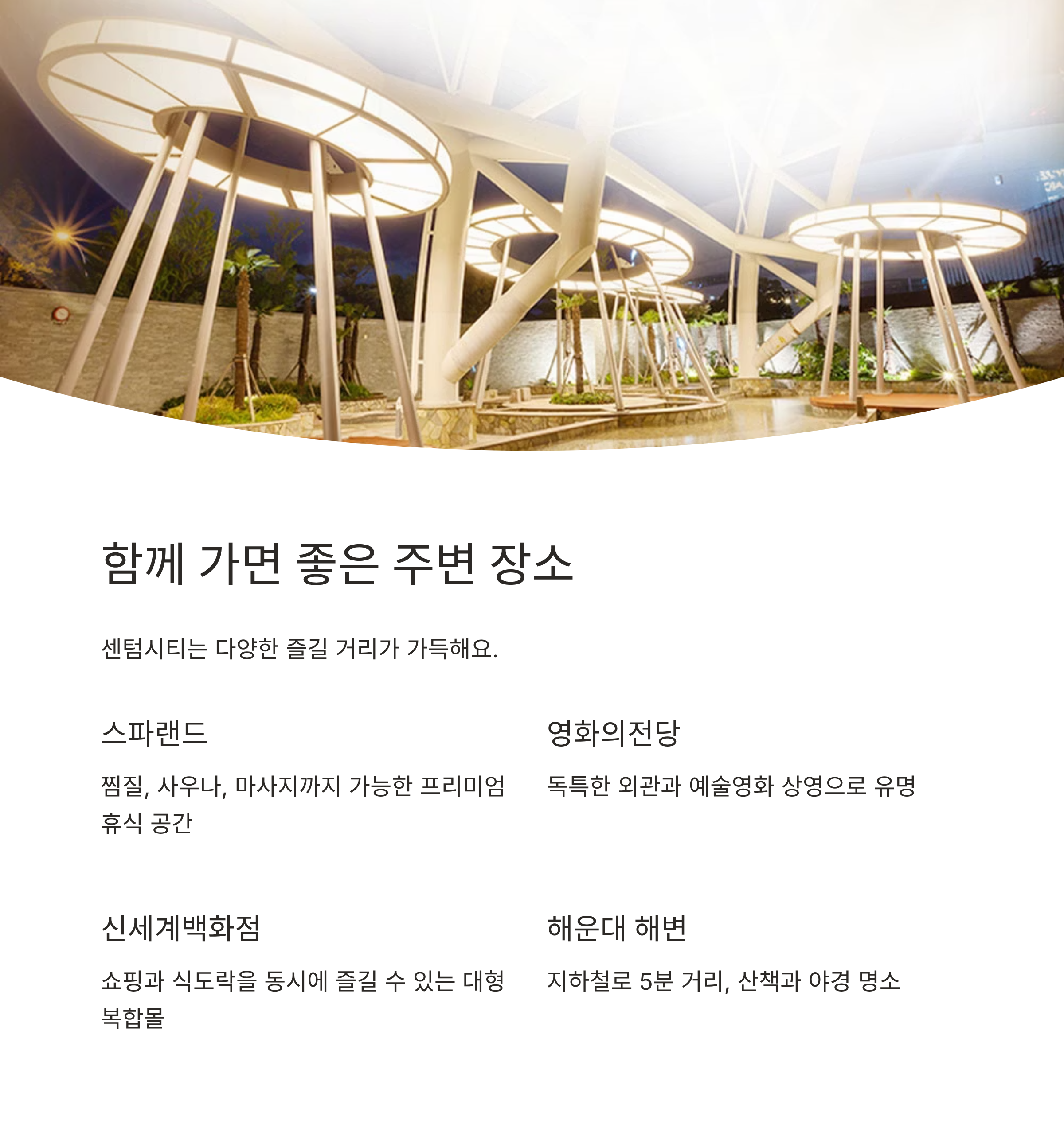 - 주변 명소와 함께 코스로 구성: 센텀시티 인근은 하루 코스 여행으로도 적합