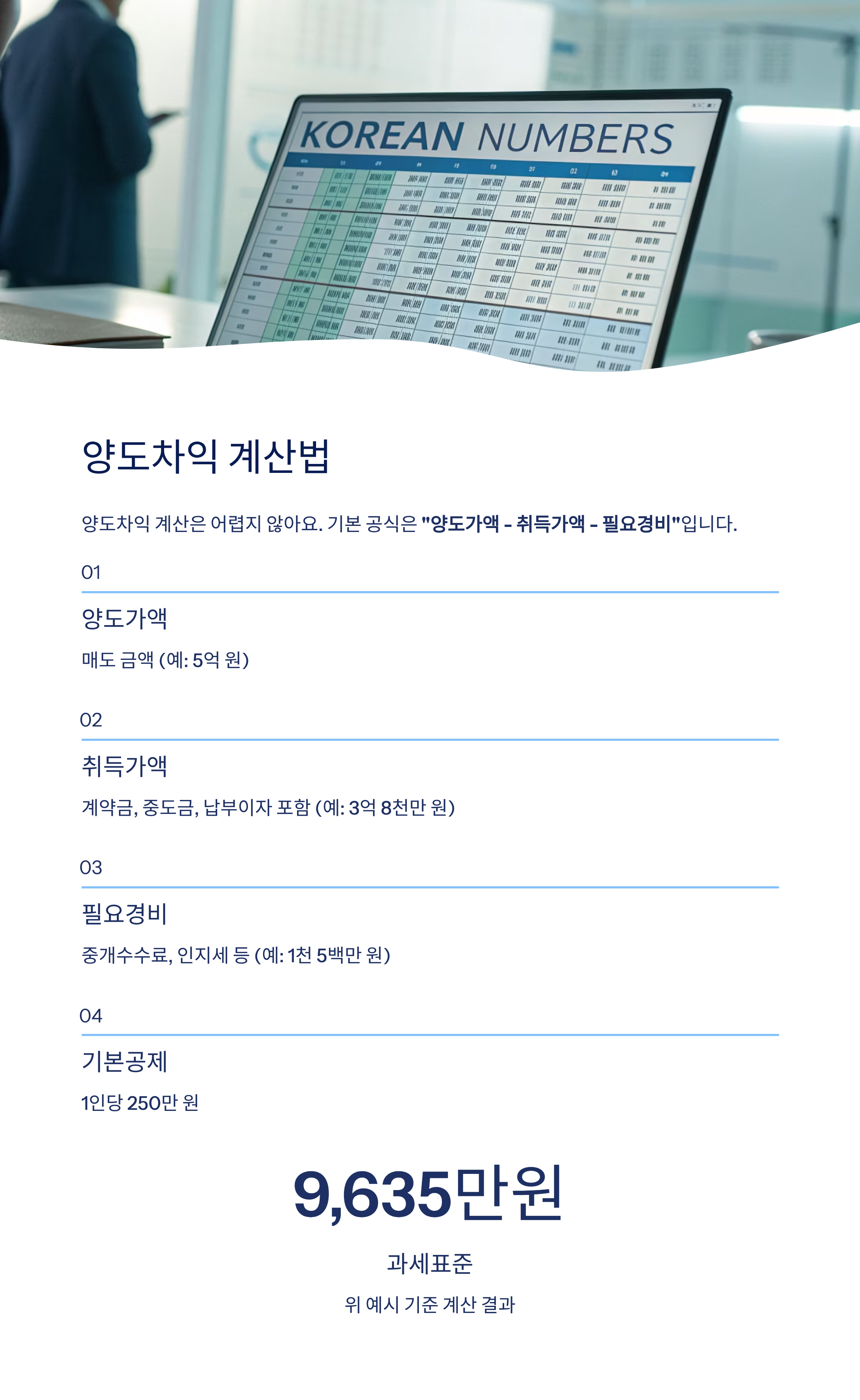 양도차익 계산은 어렵게 생각할 필요 없어요.