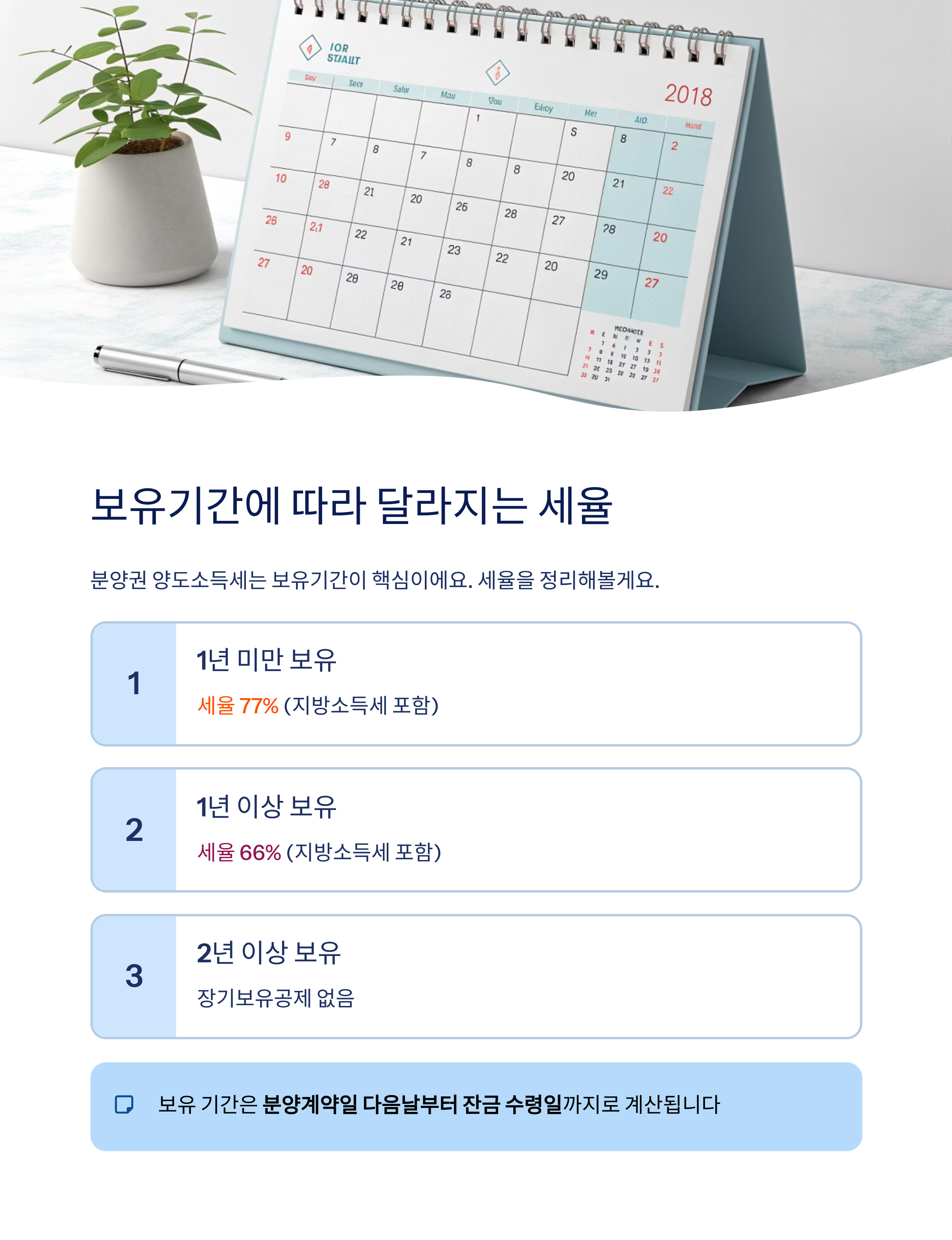보유 기간은 ‘분양계약일 다음날부터 잔금 수령일’까지로 계산됩니다.