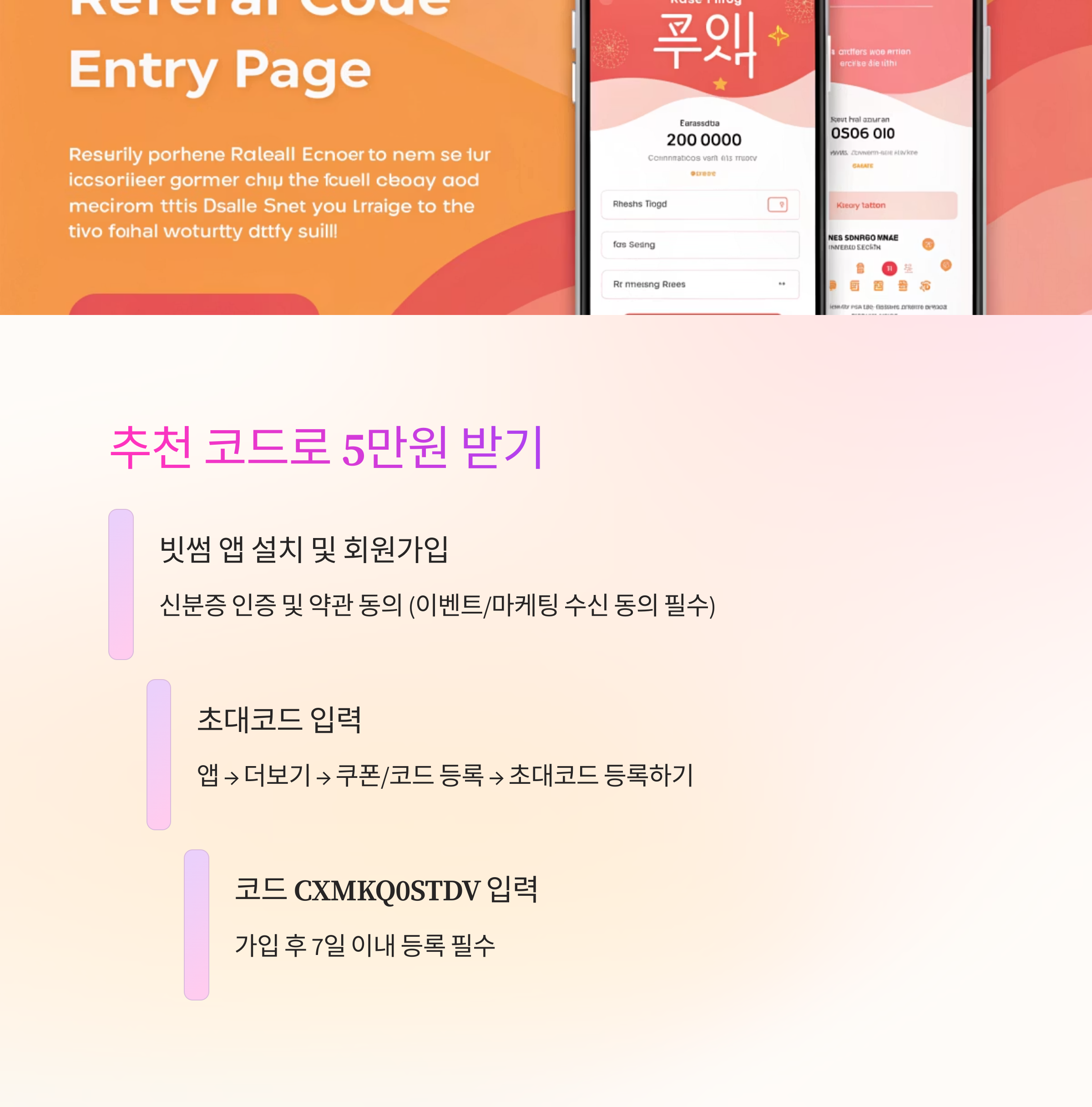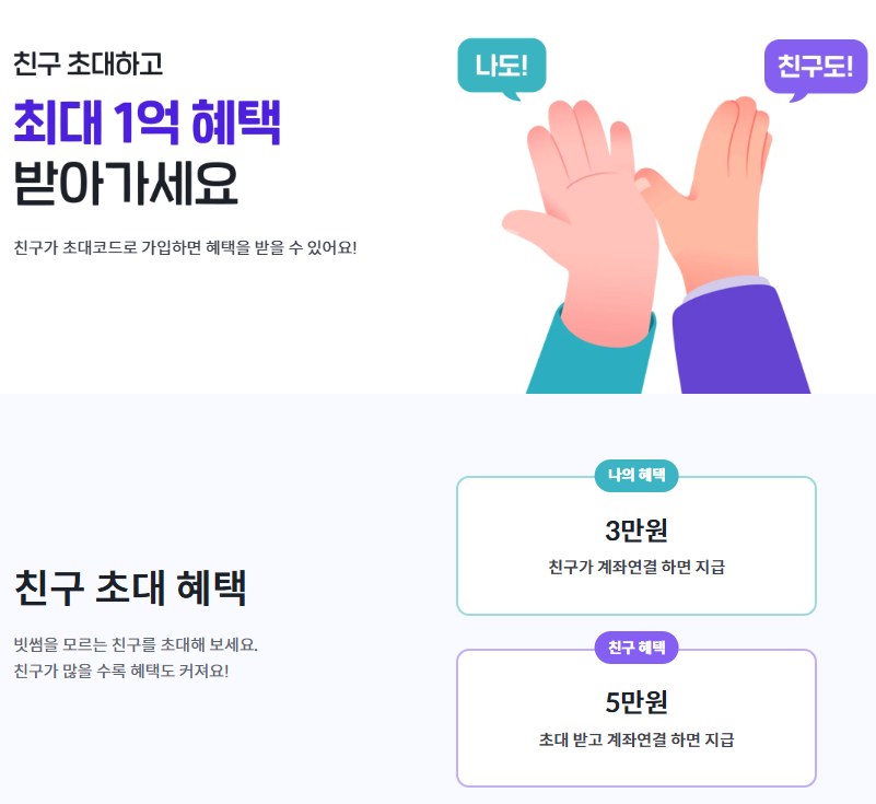 중요: 추천코드 + 계좌 연동까지 완료해야 5만원이 지급됩니다
