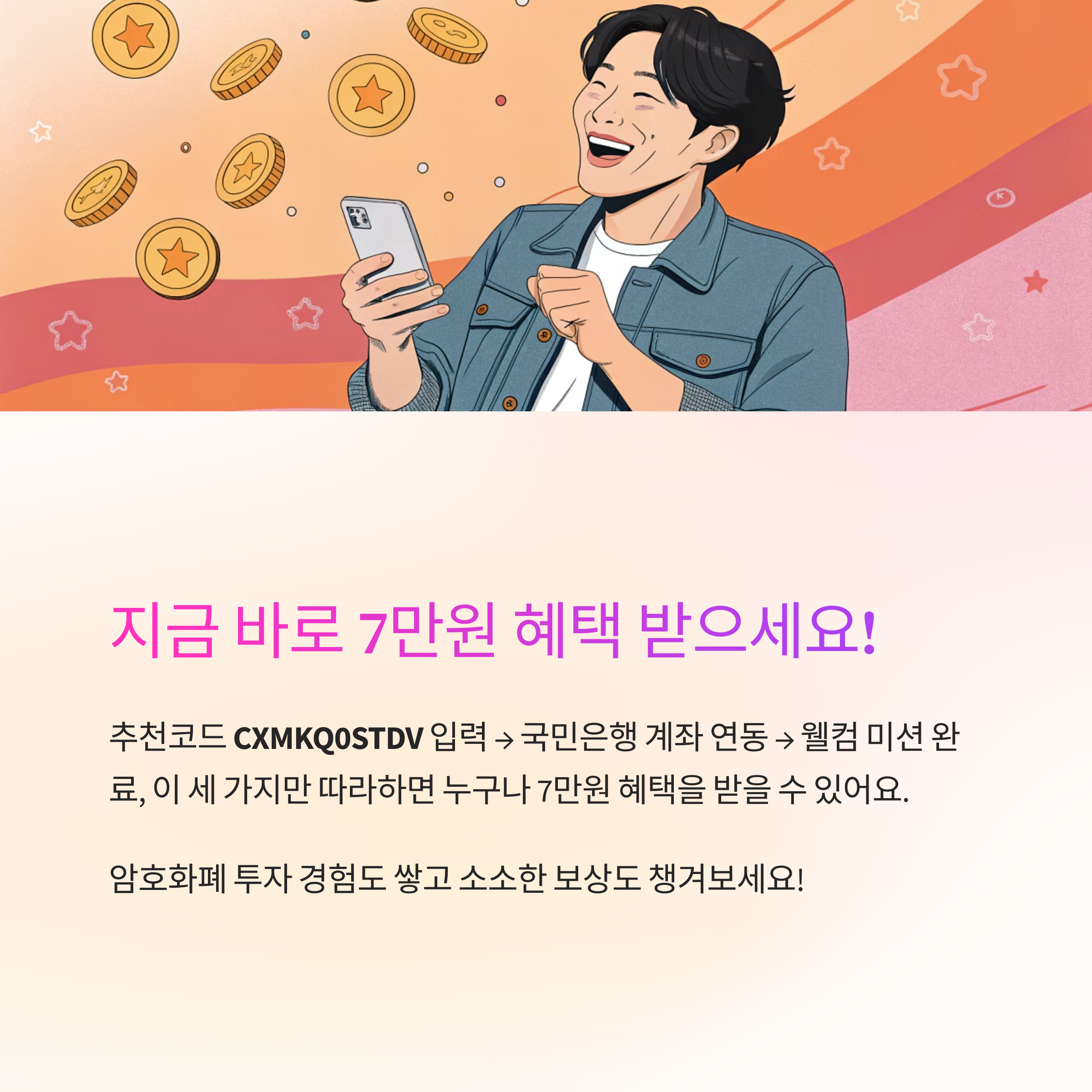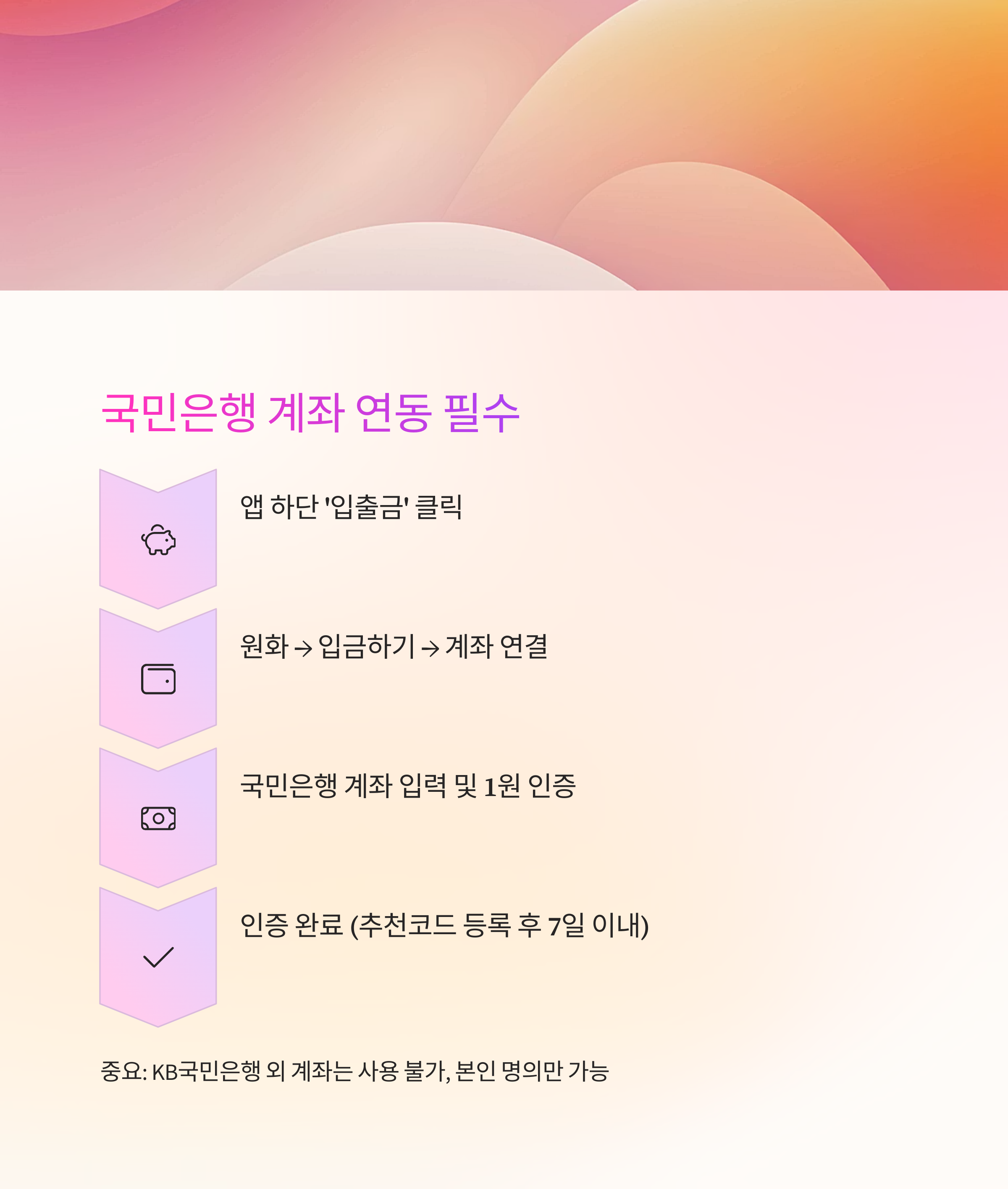 추천코드 CXMKQ0STDV 입력 → 국민은행 계좌 연동 → 웰컴 미션 완료
