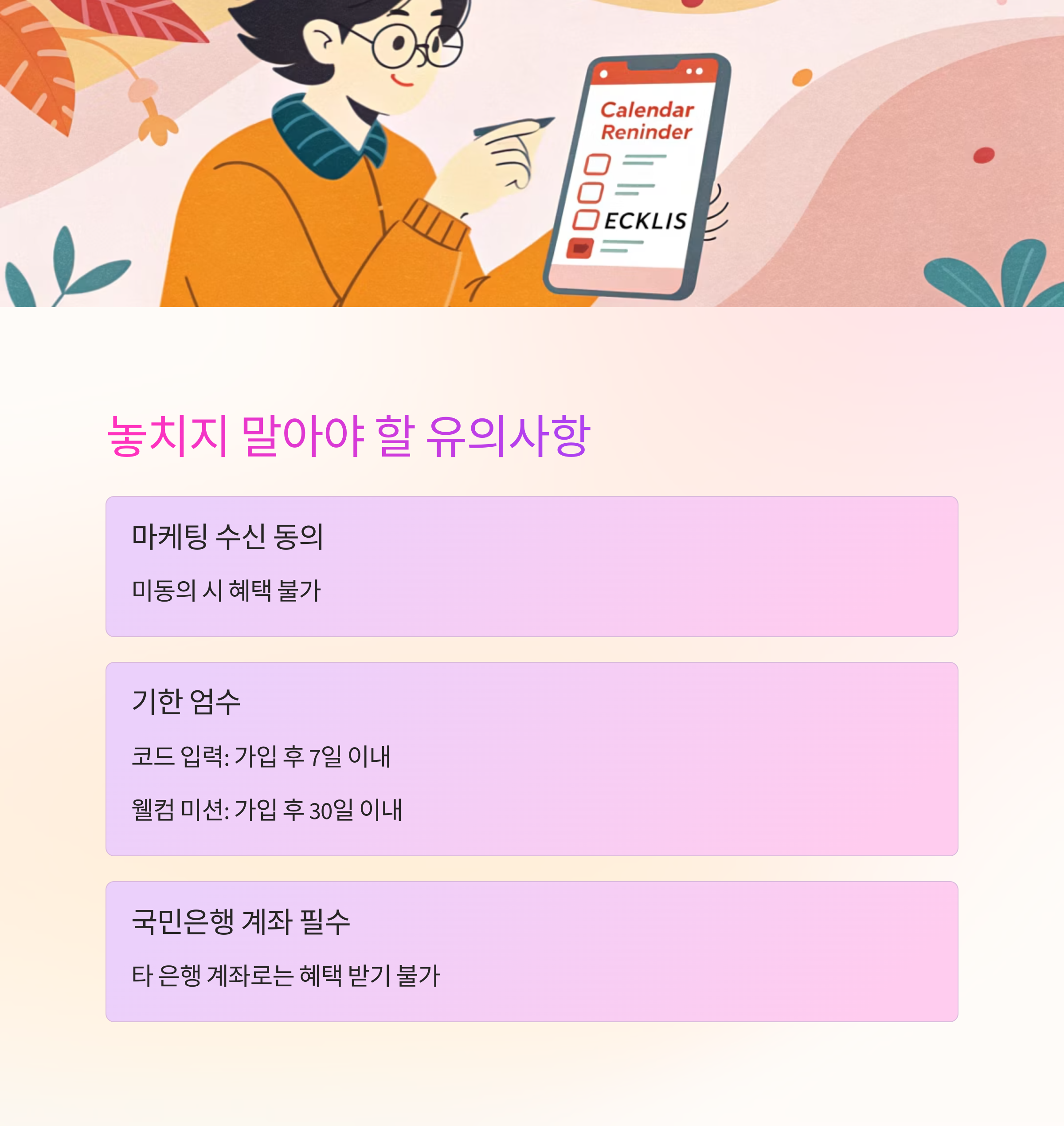 중요: 혜택은 가입 후 일정 기한 내에 절차를 완료해야 받을 수 있습니다