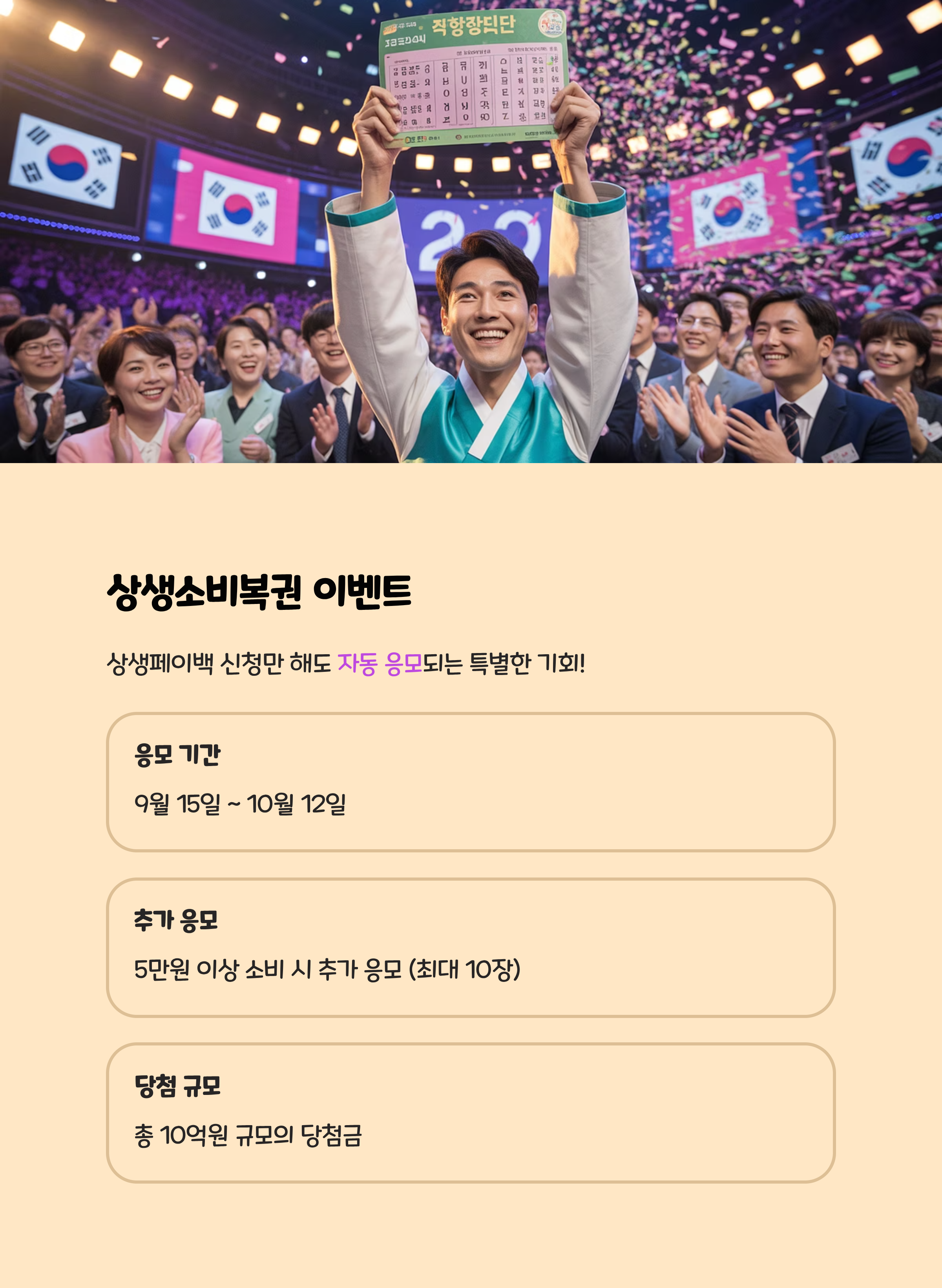 상생페이백 신청만 해도 자동 응모되는 상생소비복권이 운영됩니다.
