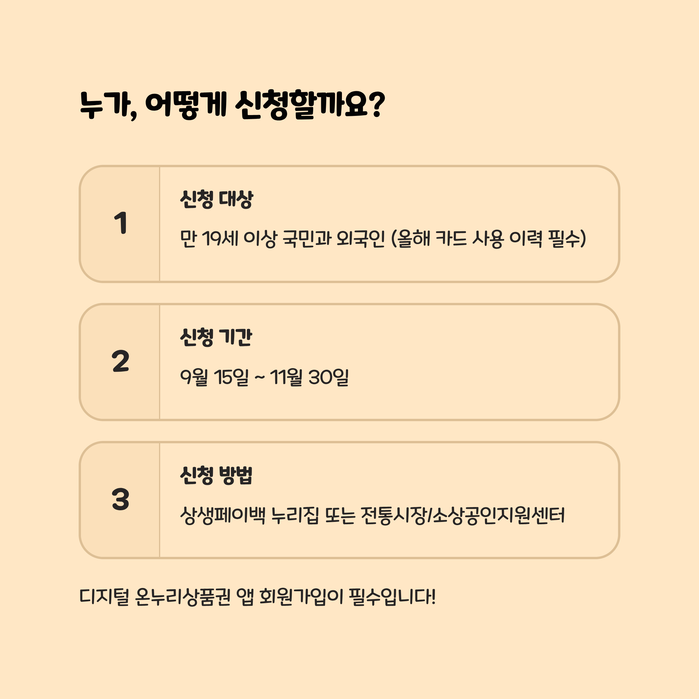 9월 15일부터 11월 30일까지 신청 기간을 놓치지 말고, 올가을 알뜰하게 소비하면서 따뜻한 혜택을 경험해 보세요.