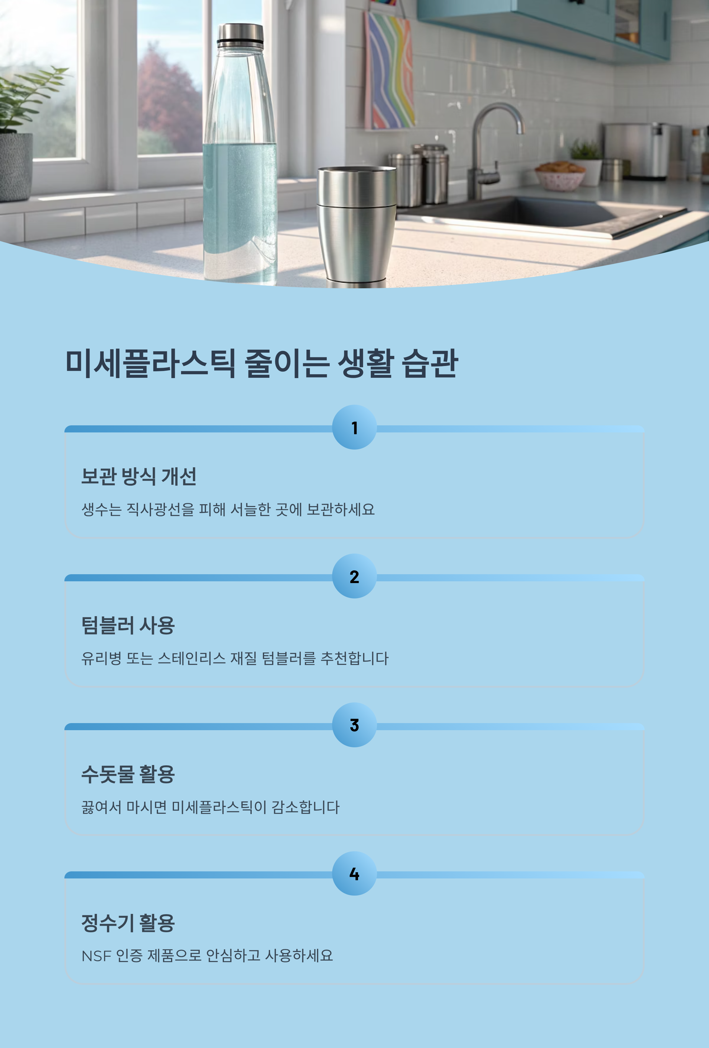 생활 속에서 미세플라스틱 노출을 줄이기 위해 꼭 실천해야 할 몇 가지를 정리해봤어요.