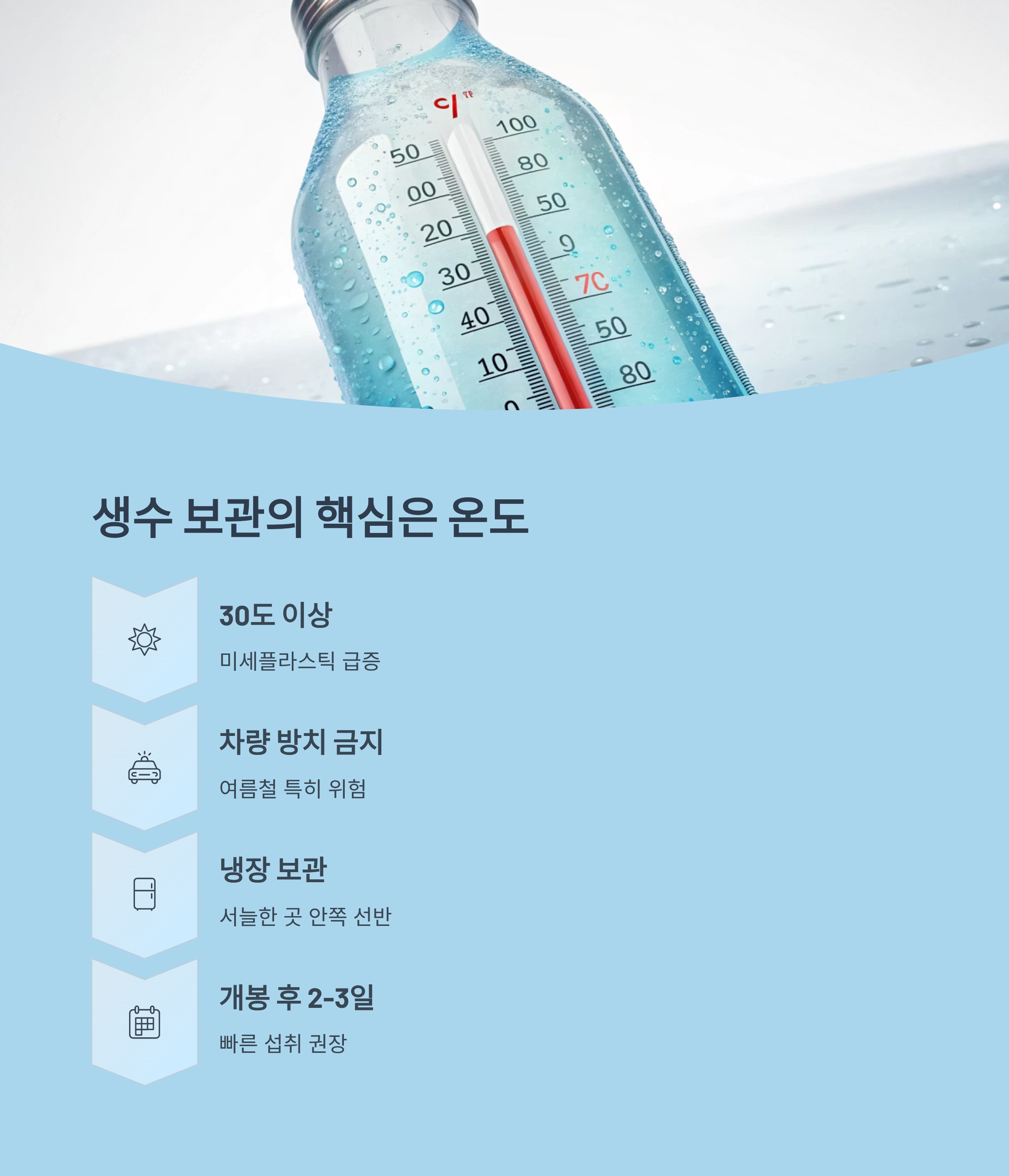 | 보관 방식 개선 | 생수는 직사광선을 피해 보관 |