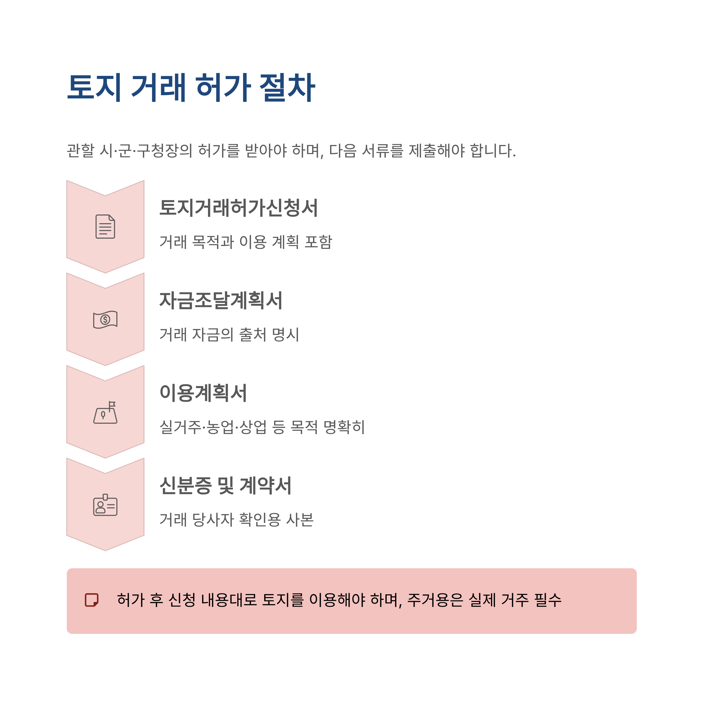토지거래허가구역 내에서 매매를 진행하려면 관할 시·군·구청장의 허가를 받아야 합니다. 거래 당사자는 다음과 같은 서류를 제출해야 하며, 심사 후 허가 여부가 결정됩니다.